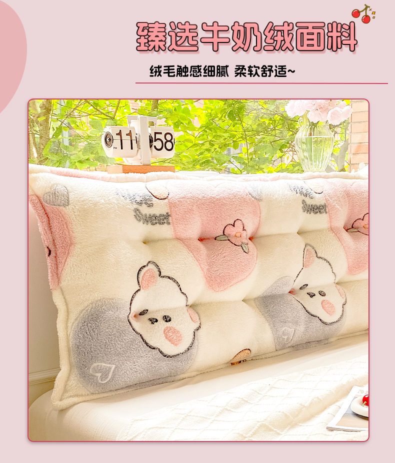 (总)碧尔 2025新款可爱儿童床头靠垫学生卧室客厅沙发飘窗榻榻米软包靠背床上靠枕双排扣直条机械钉扣牛奶绒,草莓小花,棕色小熊,芋泥啵啵