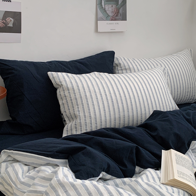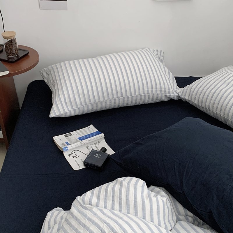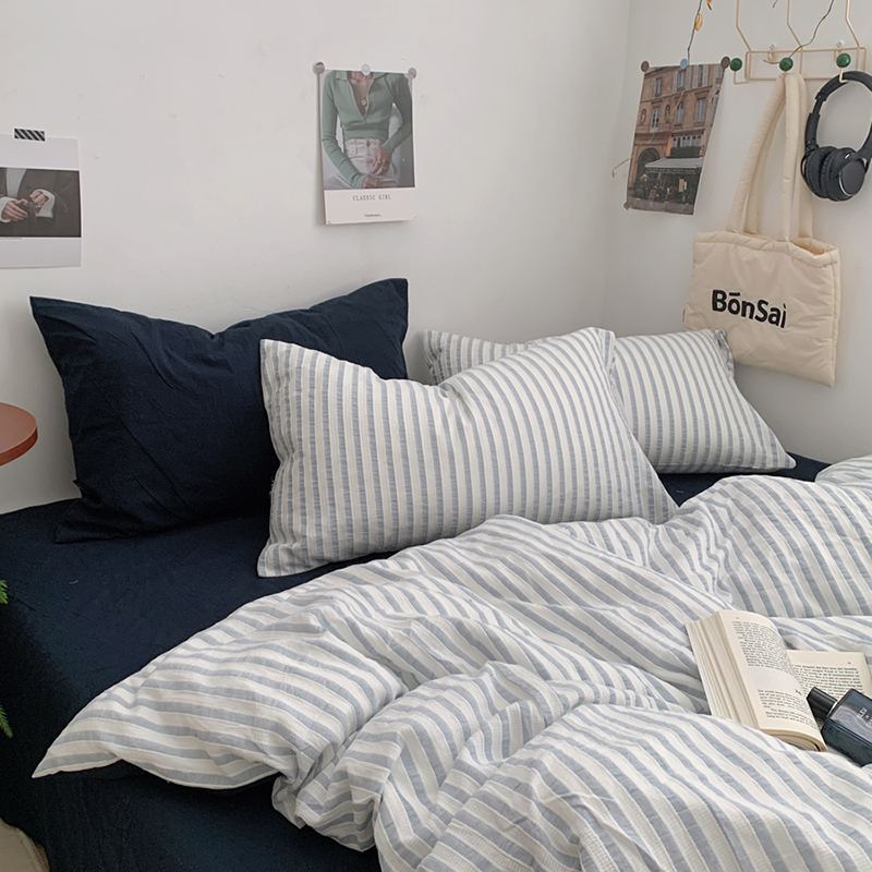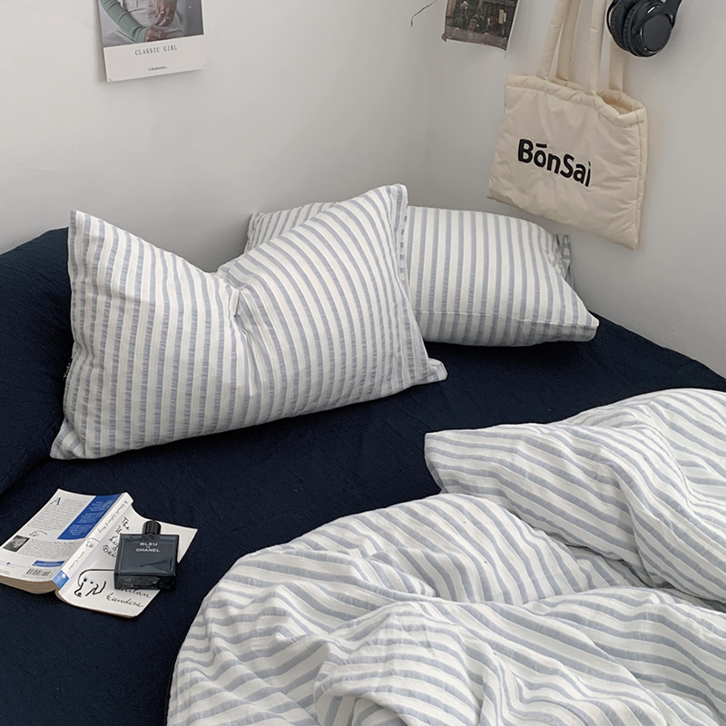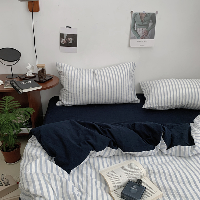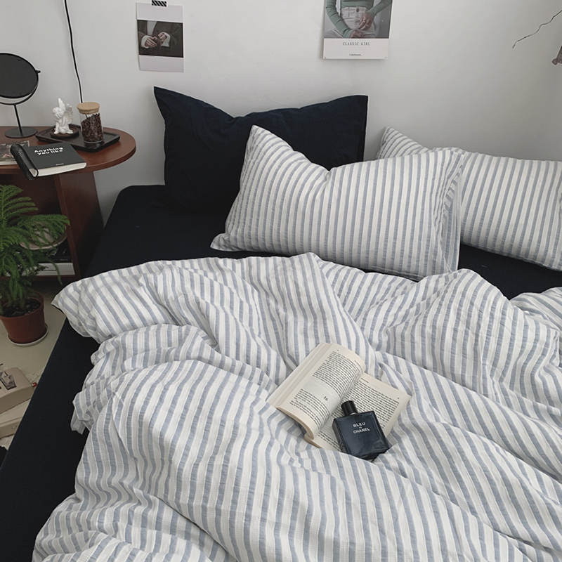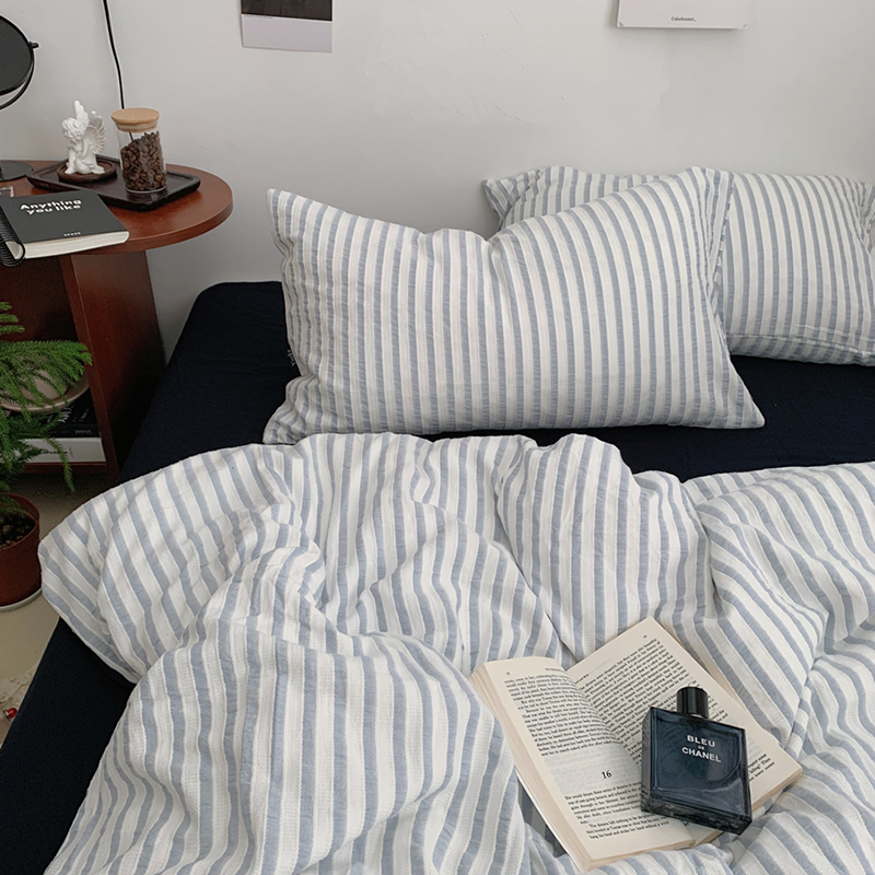 当前位置: 91家纺网 > 商品网购 > 床品套件 > 四件套 > 全棉普通四件套 > (总)柚可家居 2024新款雾蓝条纹提花水洗棉四件套(送手提袋)