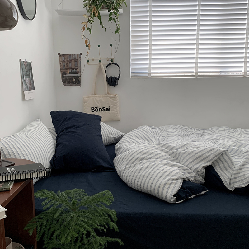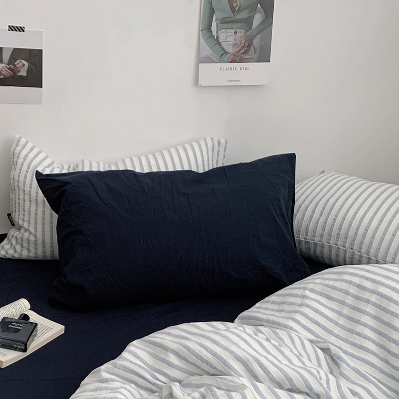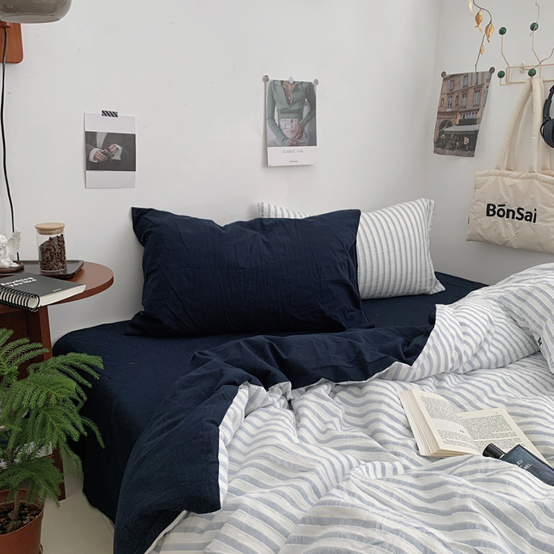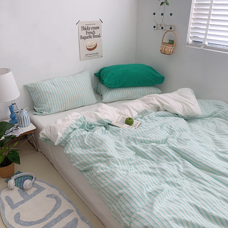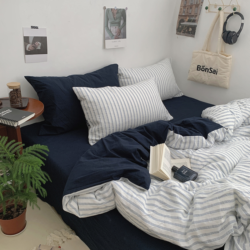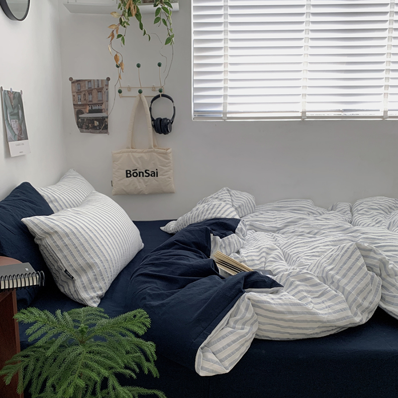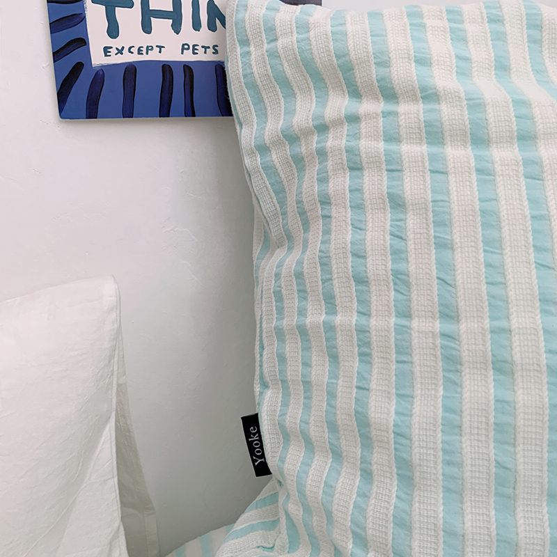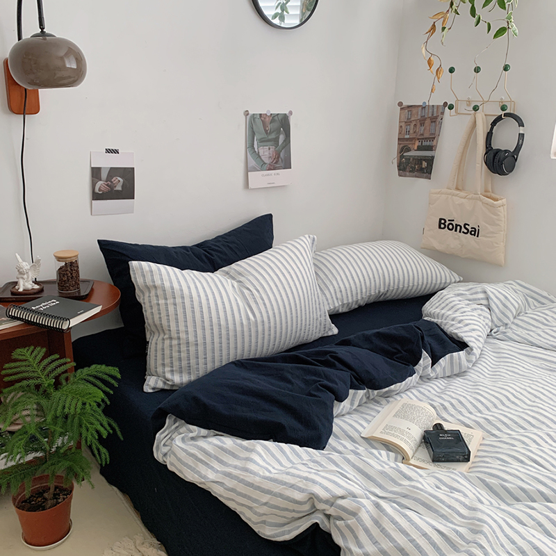 当前位置: 91家纺网 > 商品网购 > 床品套件 > 四件套 > 全棉普通四件套 > (总)柚可家居 2024新款雾蓝条纹提花水洗棉四件套(送手提袋)