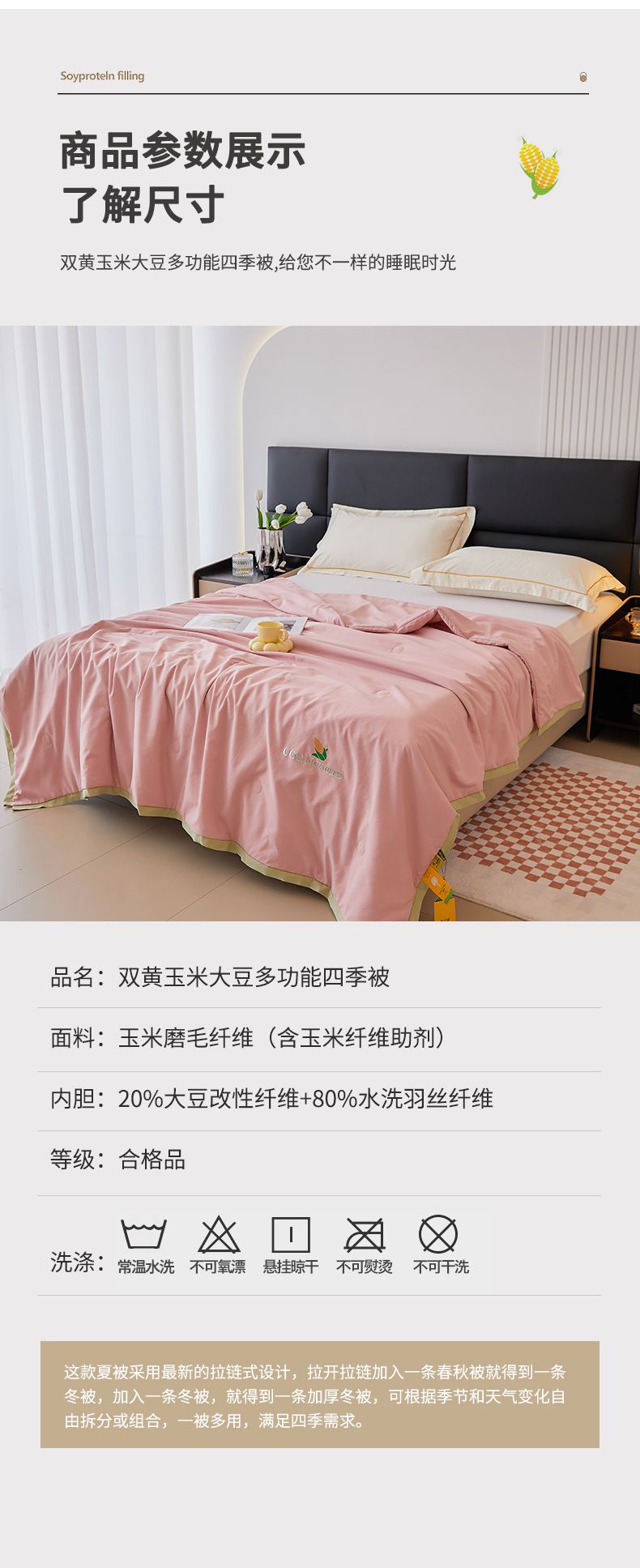 商品名称:VIP被业 2025新款玉米大豆夏被被套二合一 浪漫玉