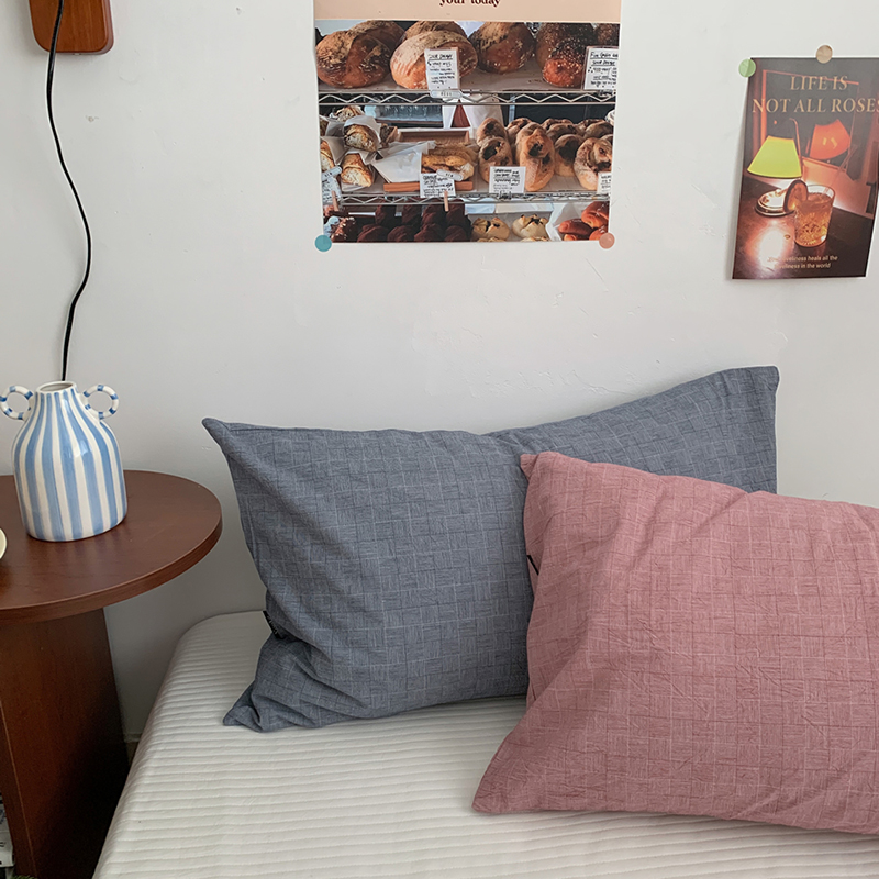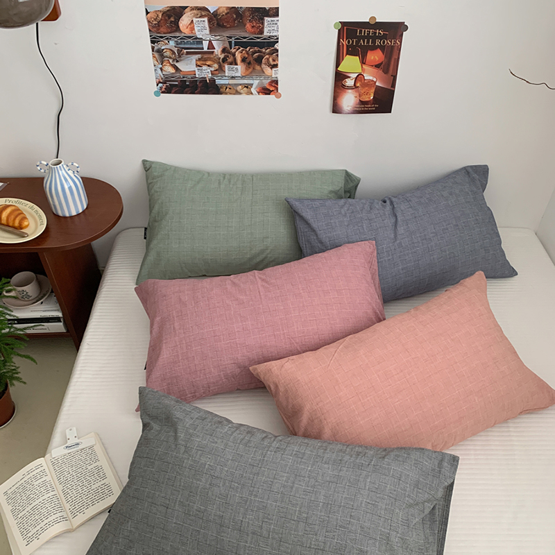 柚可家居 2024新款机理纹小提花纯棉单枕套 牛仔蓝 机理纹小提花 单枕套