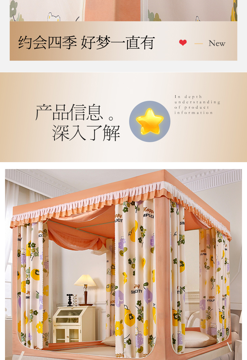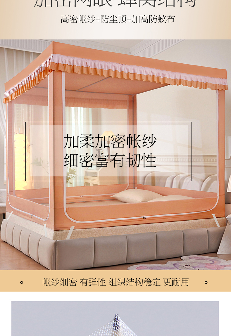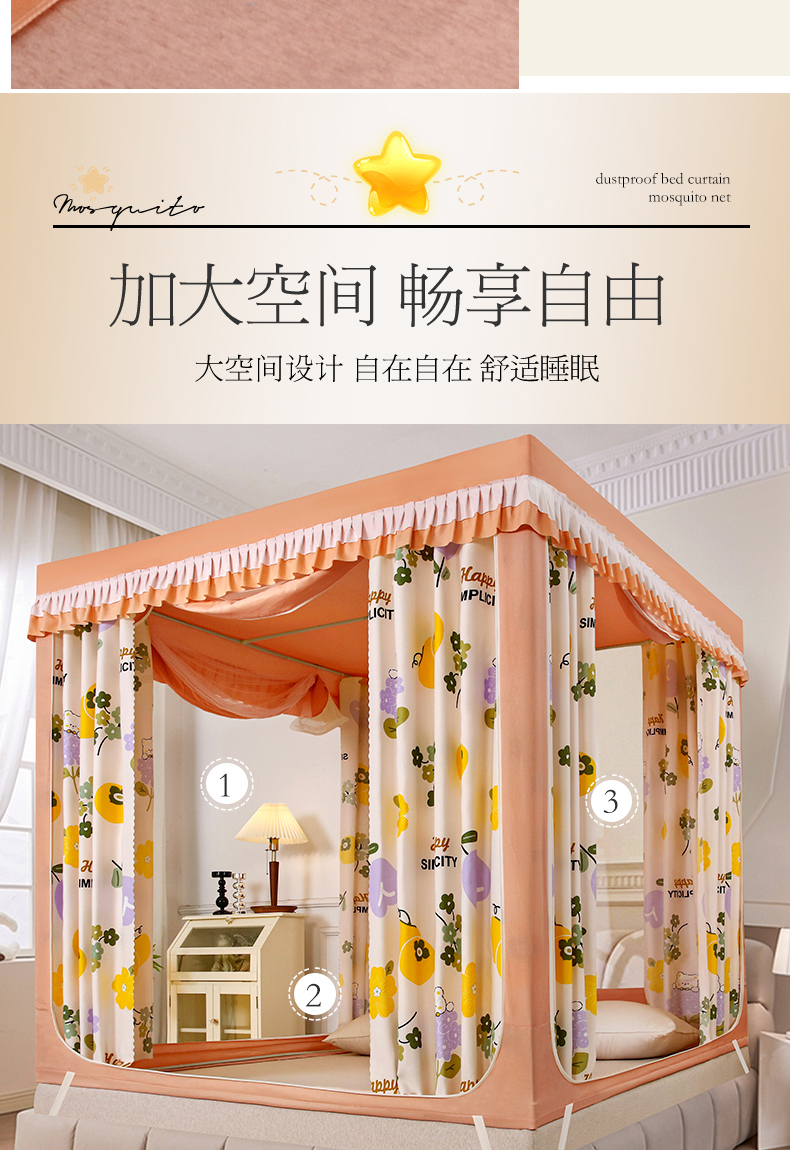 当前位置: 91家纺网 > 商品网购 > 床上用品 > 蚊帐 > 坐床式蚊帐 > 显高蚊帐 2025春夏新款U门花边款坐床遮光防尘床帘式蚊帐 柿柿如意-花边款