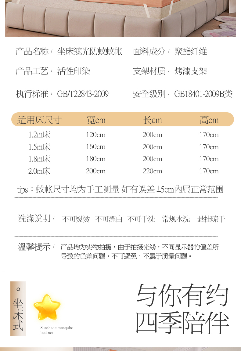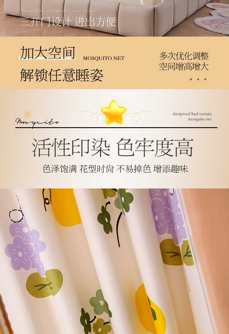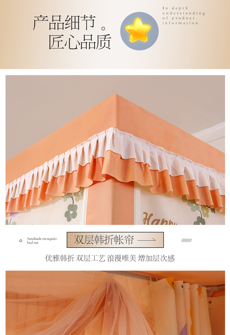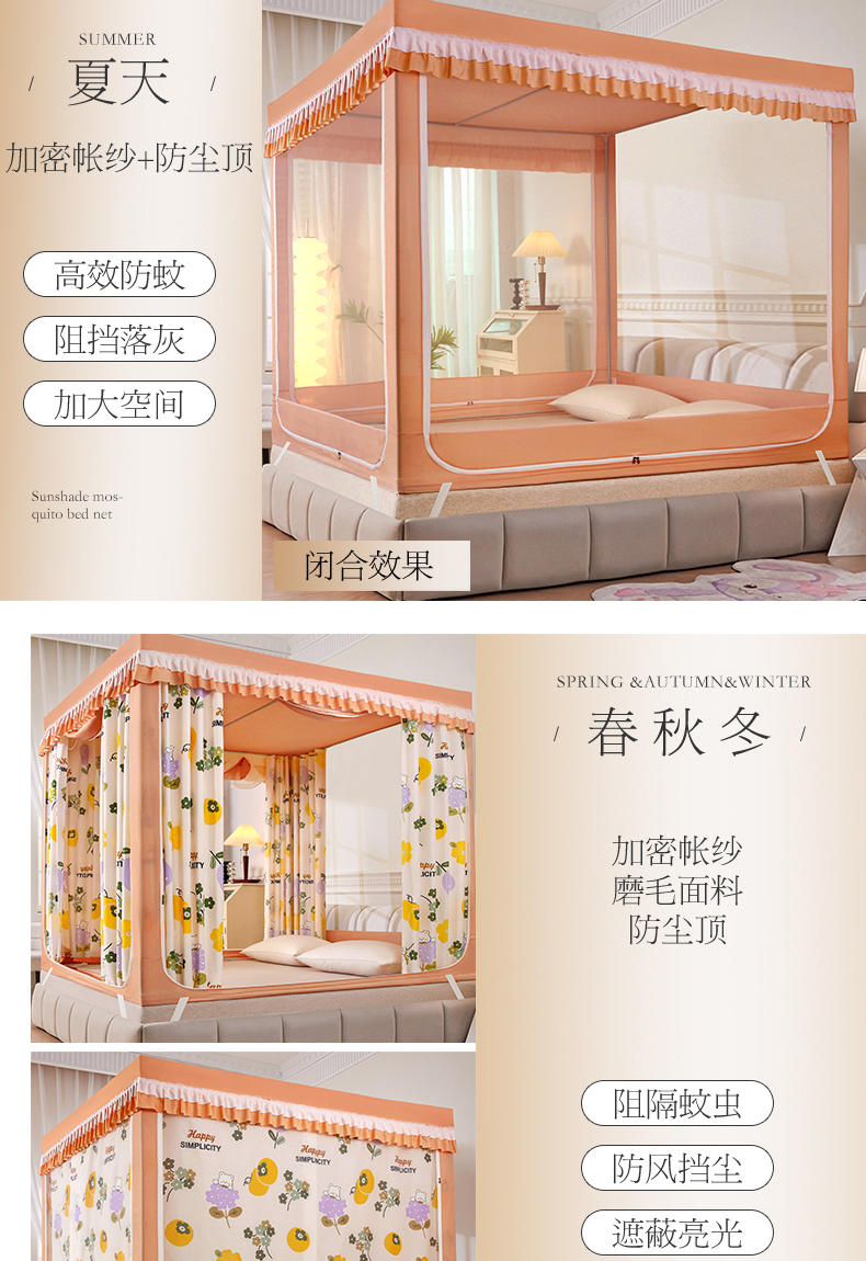 当前位置: 91家纺网 > 商品网购 > 床上用品 > 蚊帐 > 坐床式蚊帐 > 显高蚊帐 2025春夏新款U门花边款坐床遮光防尘床帘式蚊帐 柿柿如意-花边款