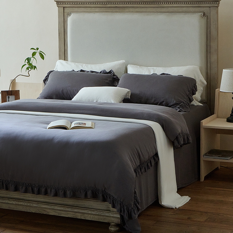 (总)子和家居 2025新款全棉麻感棉花朵款四件套-场景2,麻感棉花朵款四件套