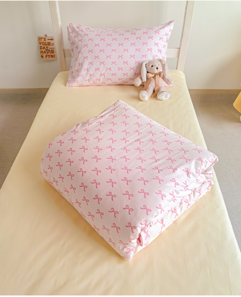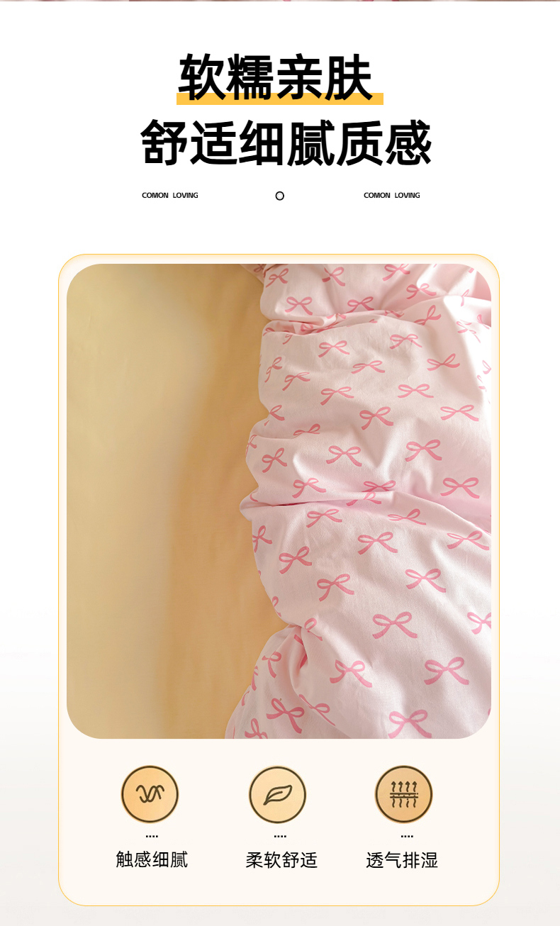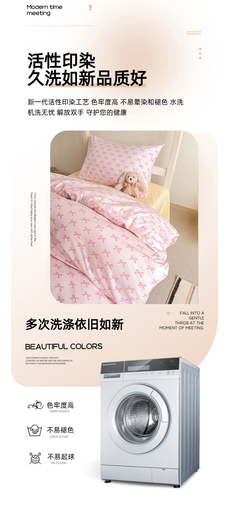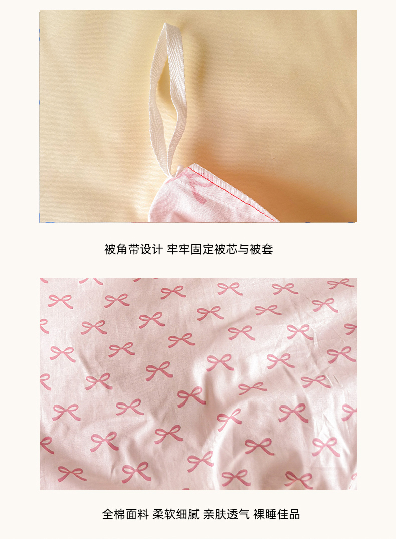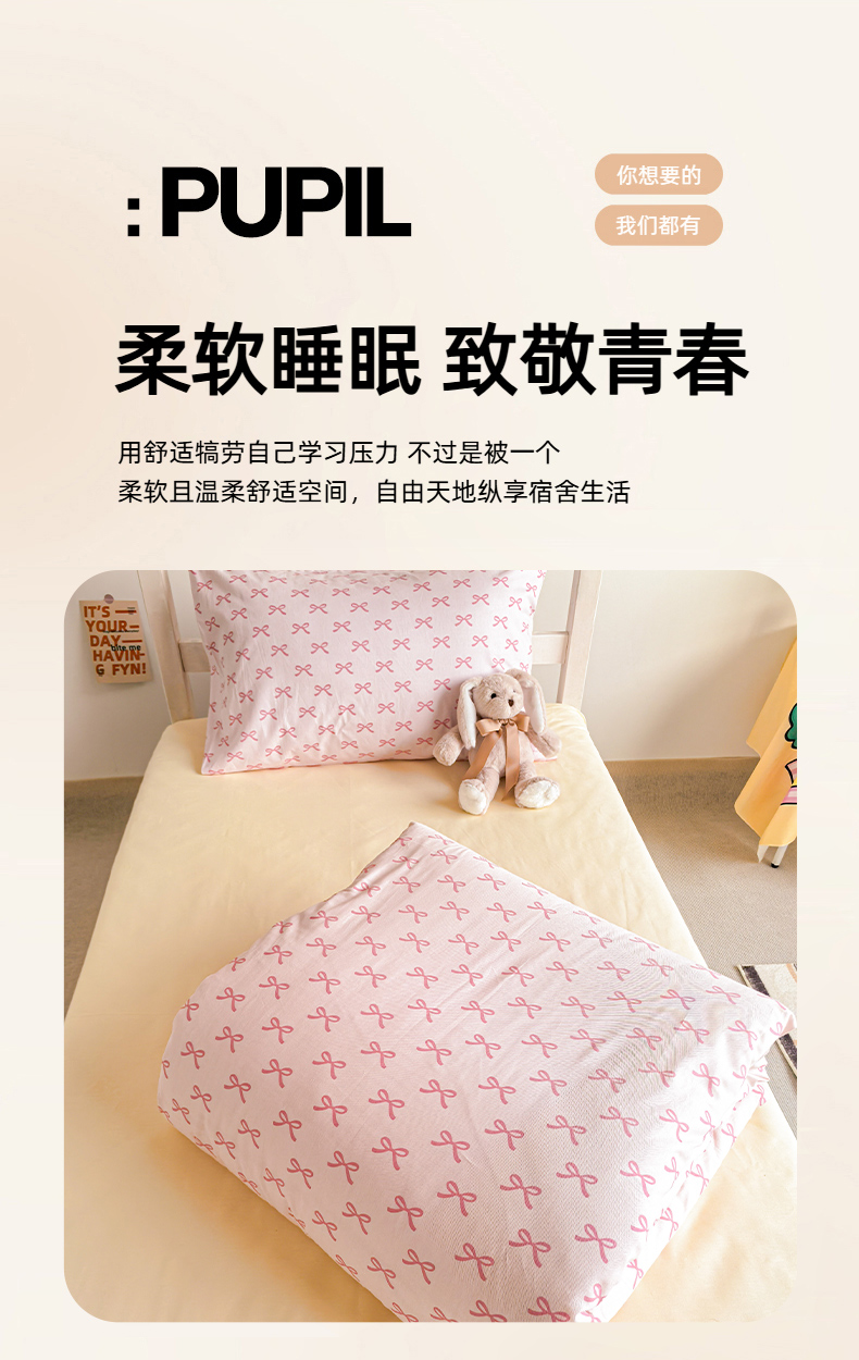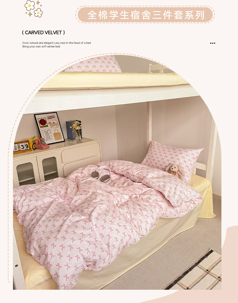 商品名称:锦彩家居 2025新款正宗13372全棉学生三件套全棉印花学生宿舍上下铺三件套(量大可定制价格可谈)提供买家秀 粉蝴蝶结