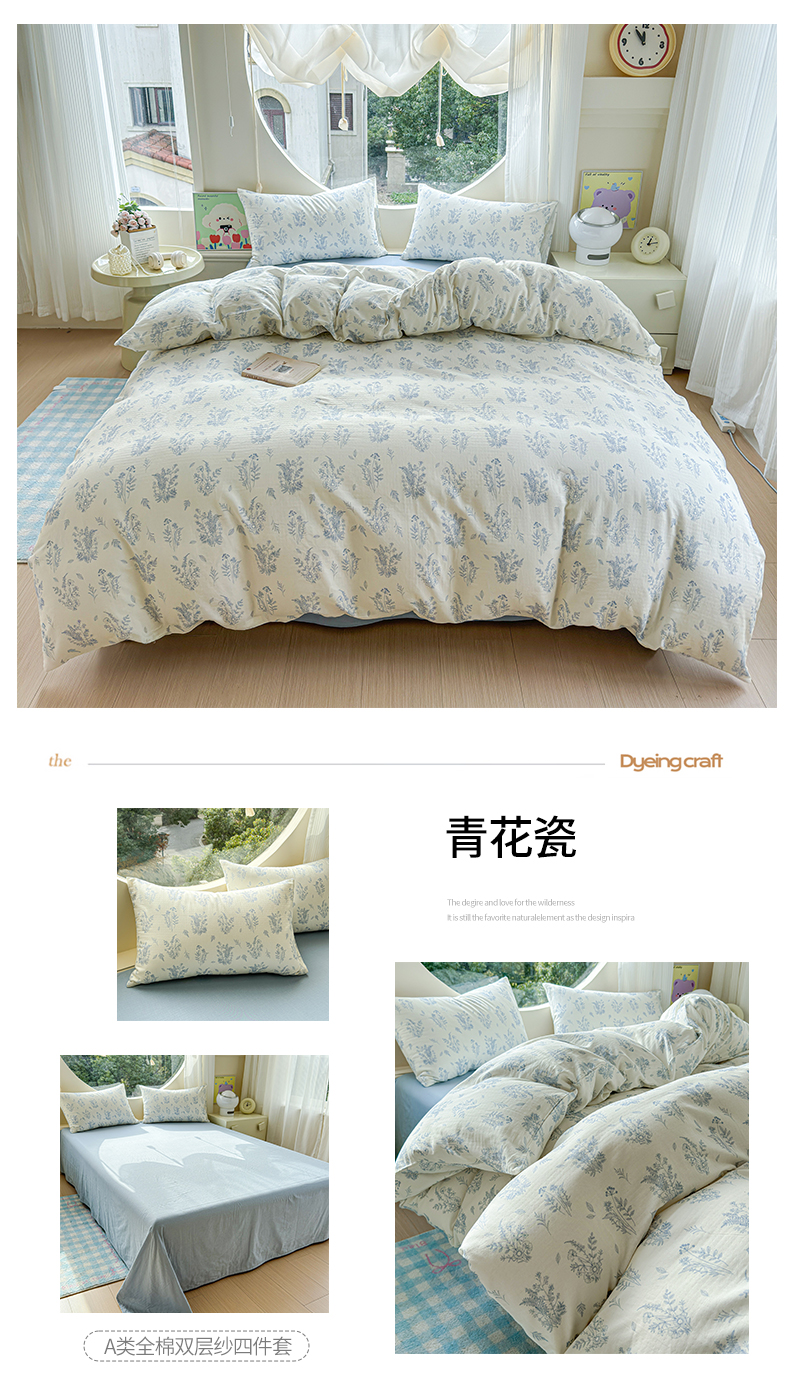 当前位置: 91家纺网 > 商品网购 > 床品套件 > 四件套 > 双层纱四件套 > 感遇家纺 2025新款全棉纯棉千柔双层纱四件套 韩系蓝条