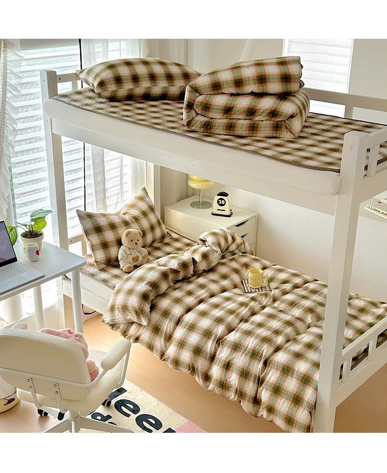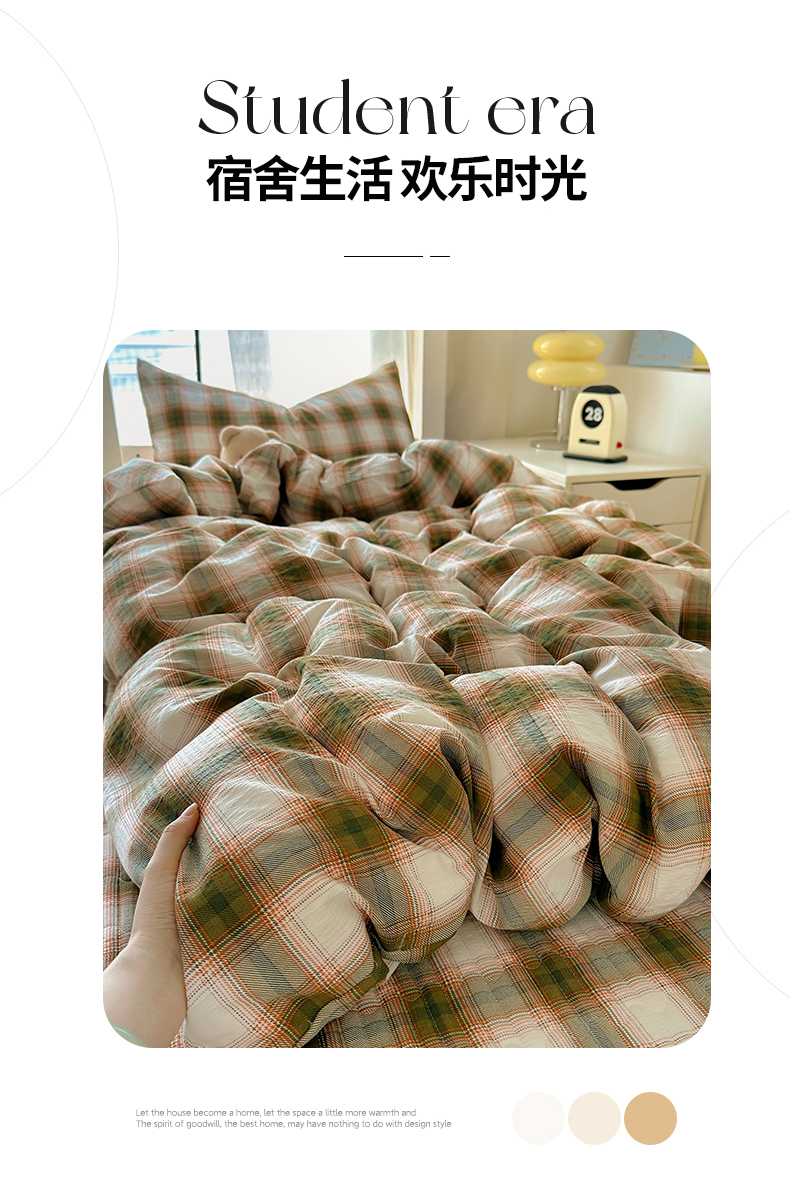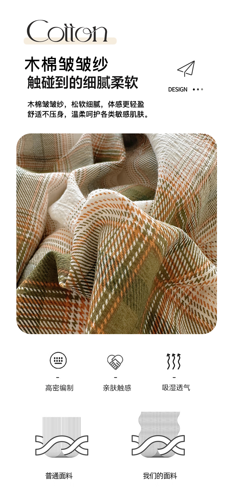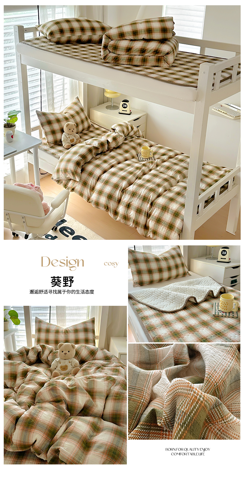 商品名称:美梦家纺2025新款木棉皱皱纱学生床盖四件套 葵野
