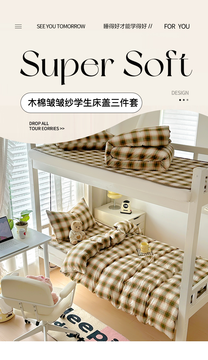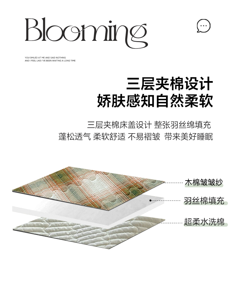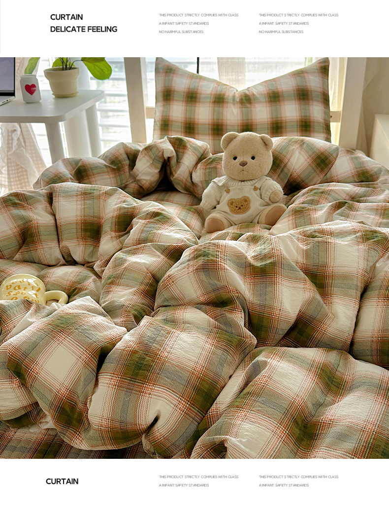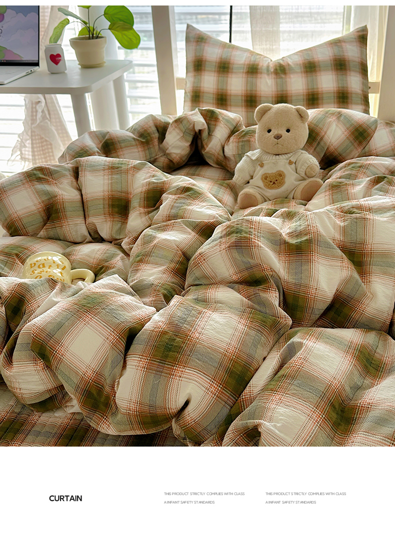 商品名称:美梦家纺2025新款木棉皱皱纱学生床盖四件套 葵野