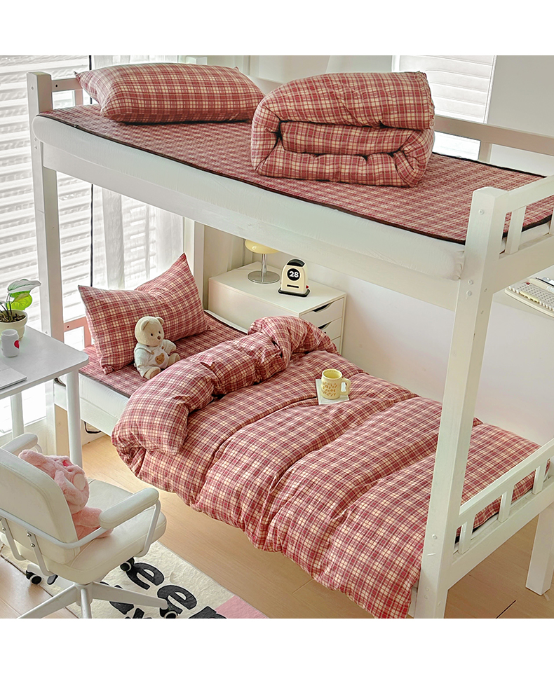美梦家纺2025新款木棉皱皱纱学生床盖四件套 圣诞