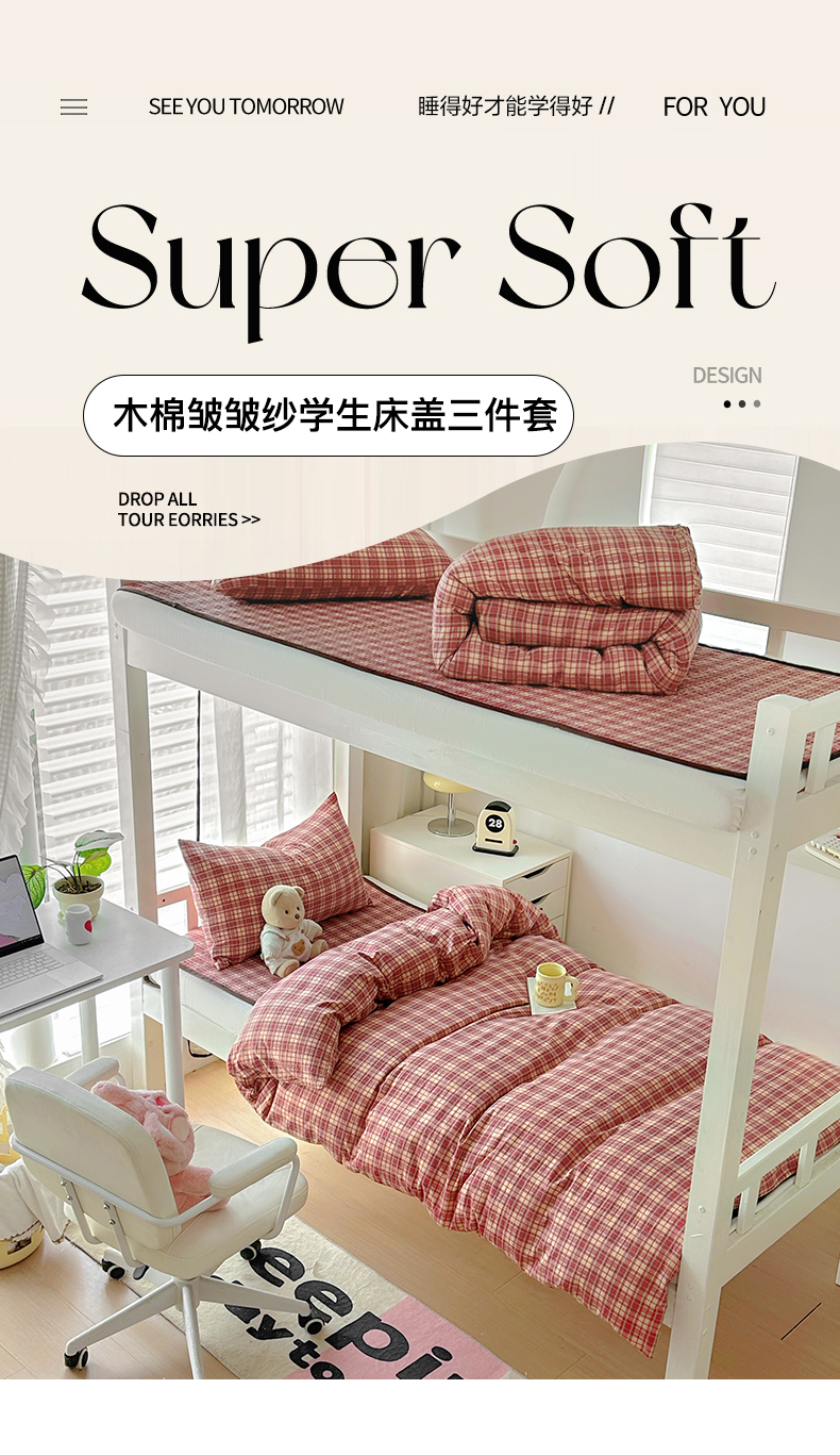 (总)美梦家纺2025新款木棉皱皱纱学生床盖三件套,相思粉,森田园野,樱桃格格,松野,银河,薄巧,茉莉清风,巧克力狗狗,葵野,圣诞,幻夜,花间露语,蜡笔画,点点莓果,波点奶昔,彼得小兔,相思兰,格调蝴蝶结,黑櫻梦境,晩樱落海,遇见彩虹