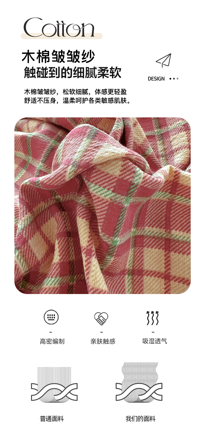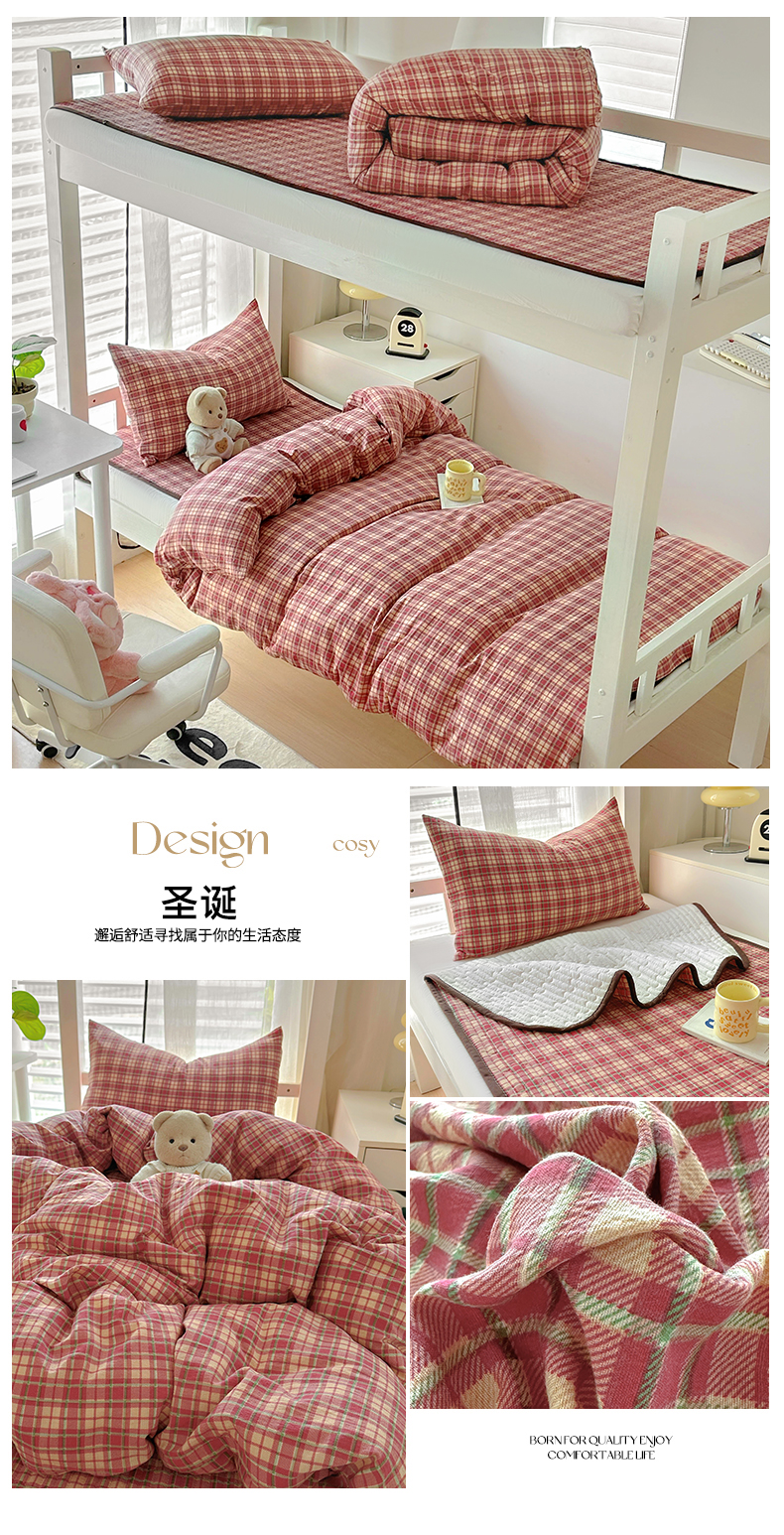 商品名称:美梦家纺2025新款木棉皱皱纱学生床盖四件套 圣诞