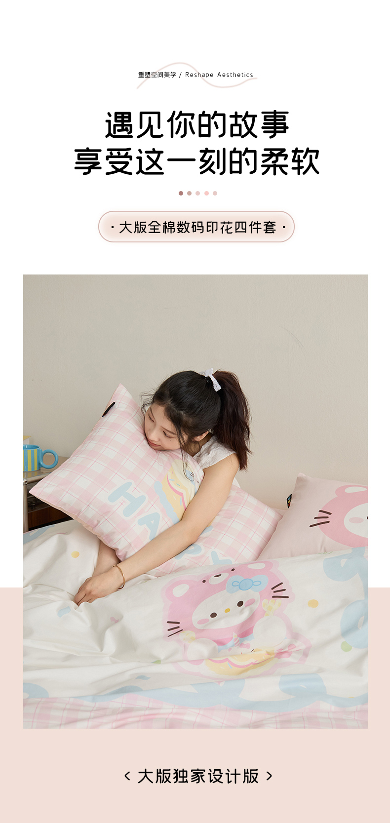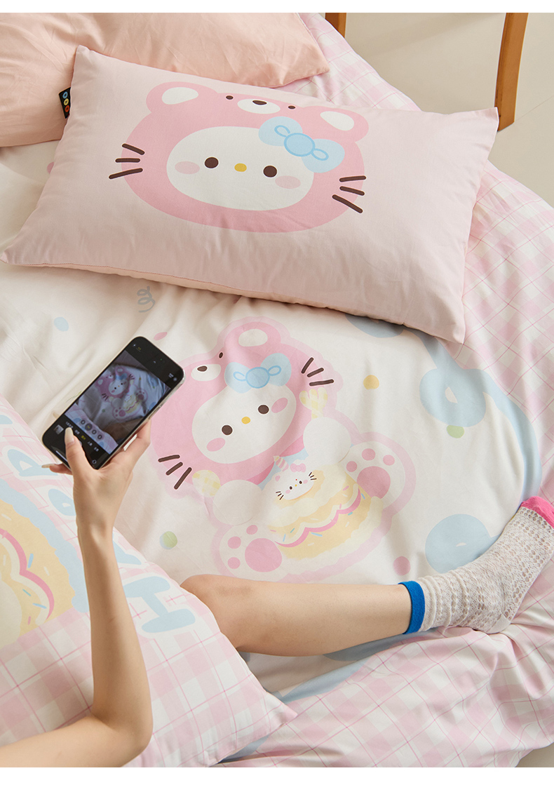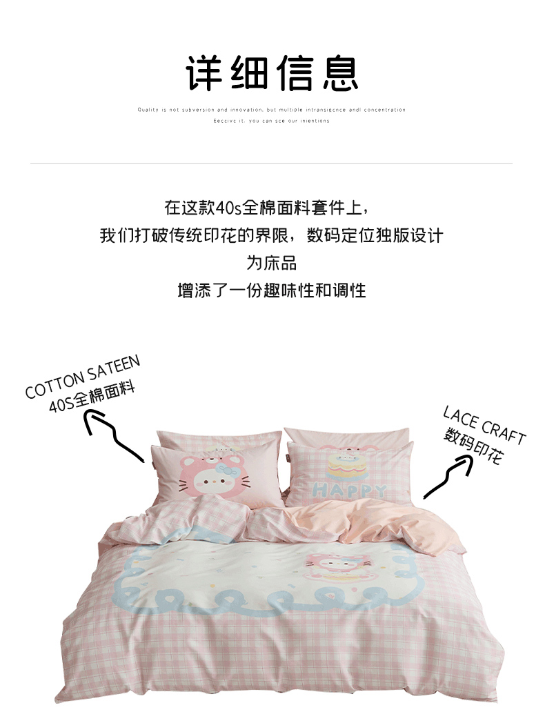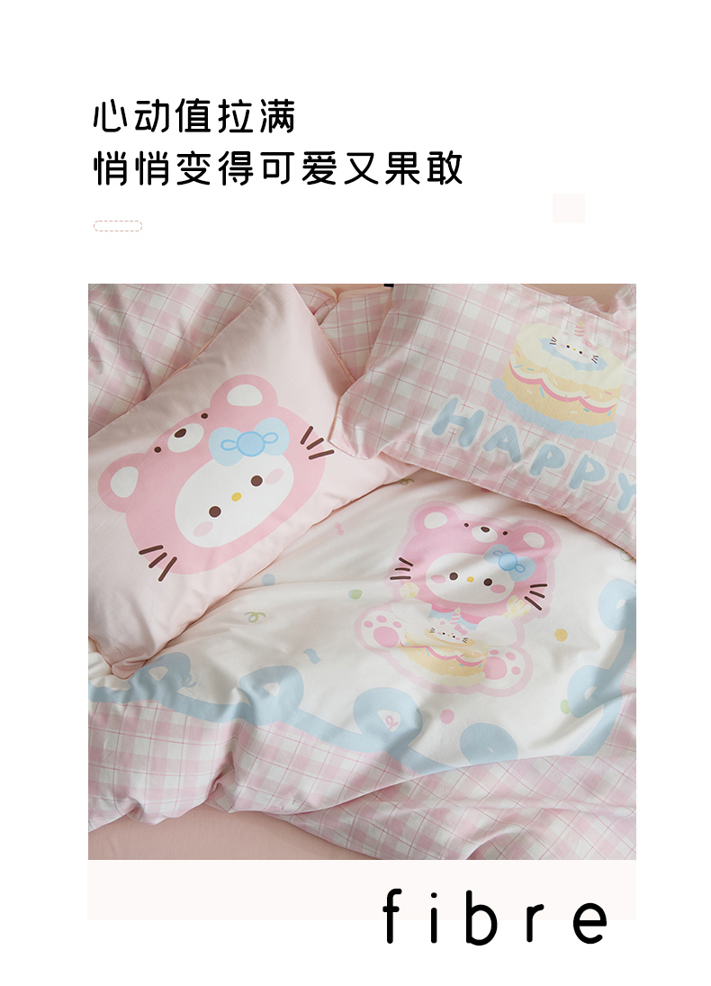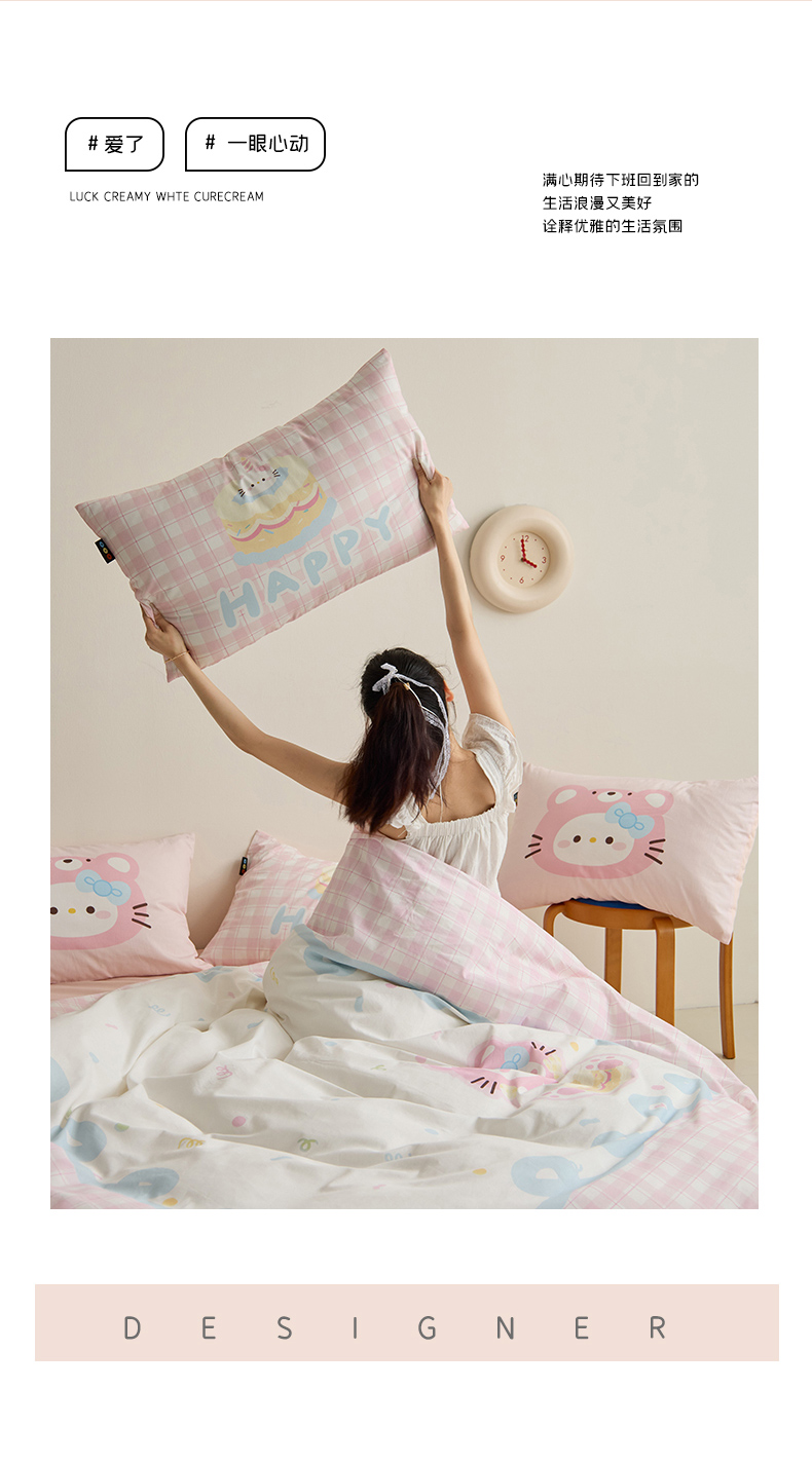 商品名称:RYB红黄兰 开学季2025新款ins设计师原创13372大版卡通数码印花40s全棉纯棉三件套四件套 蛋糕小奶猫