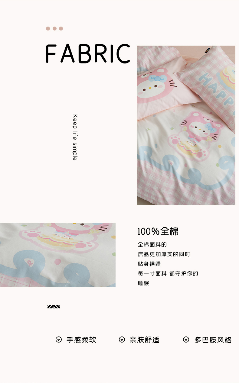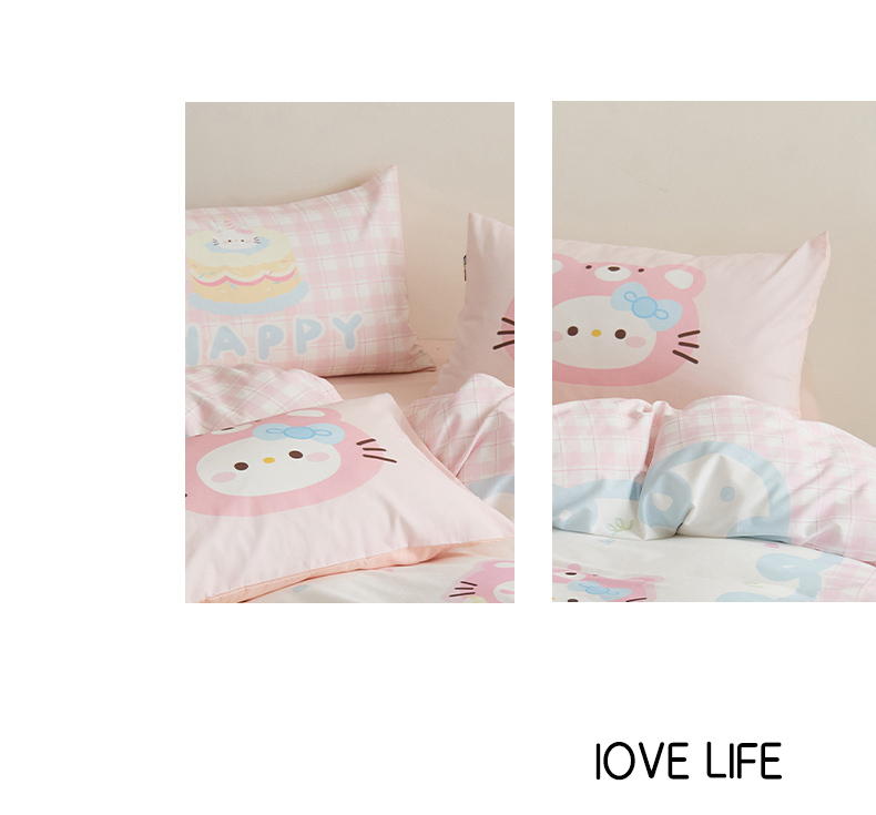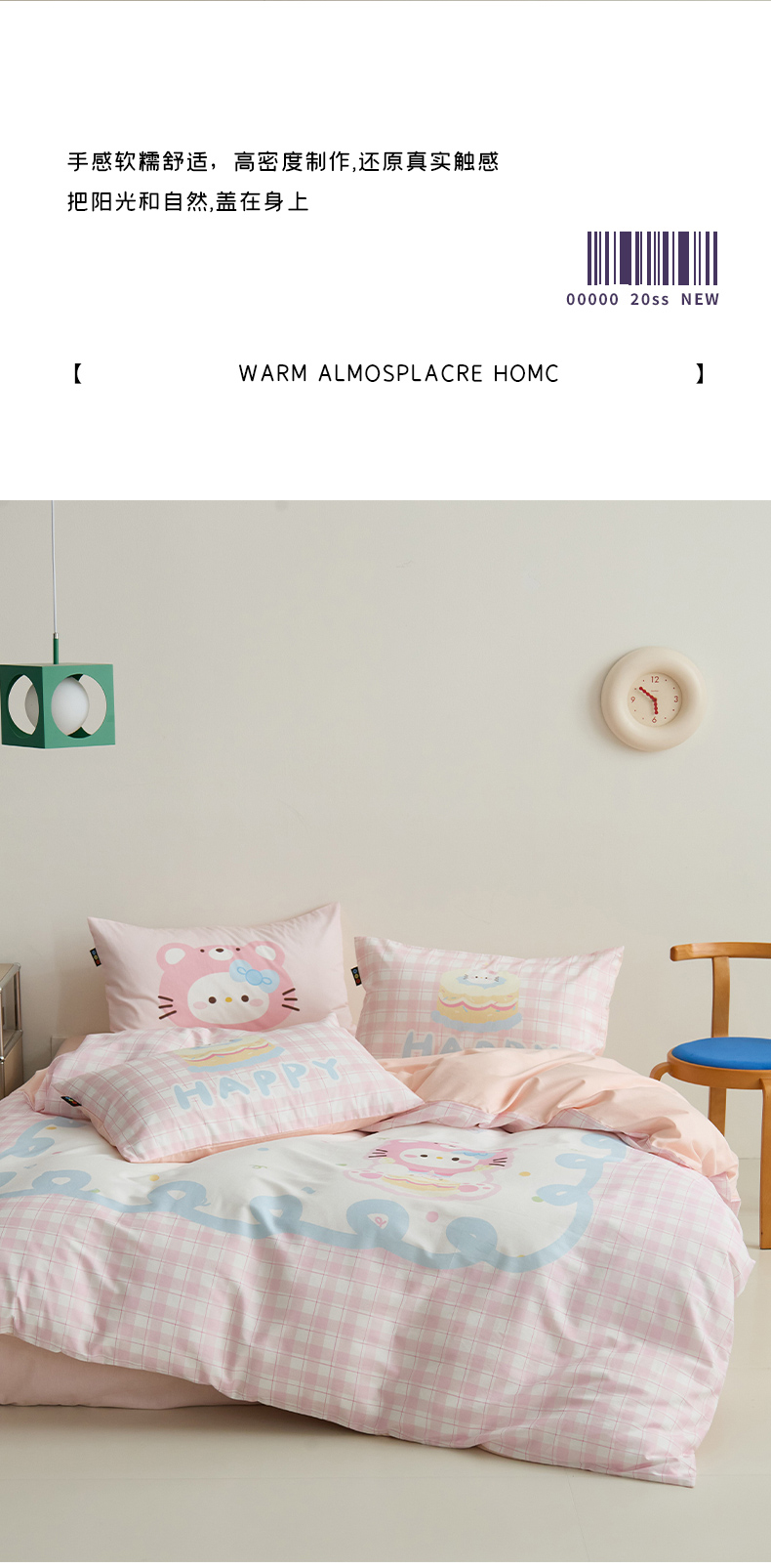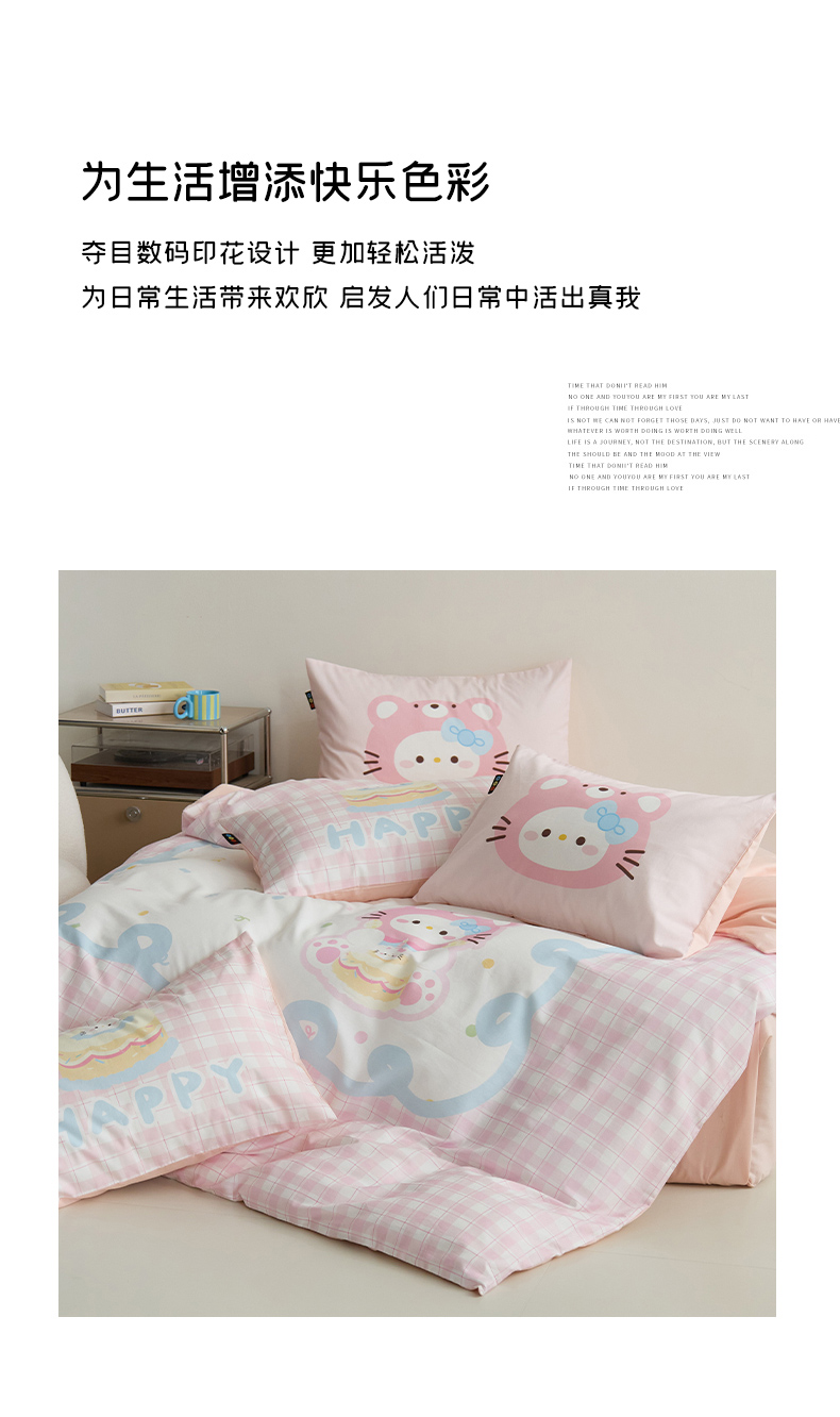 商品名称:RYB红黄兰 开学季2025新款ins设计师原创13372大版卡通数码印花40s全棉纯棉三件套四件套 蛋糕小奶猫