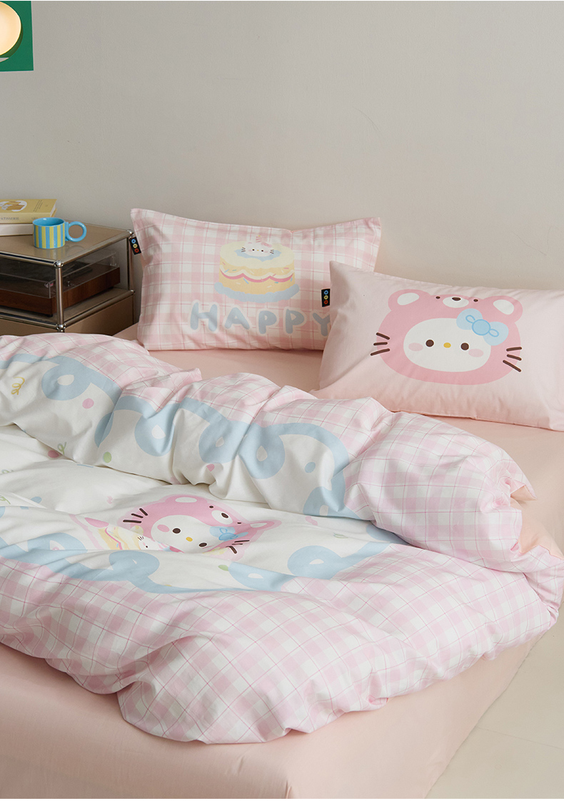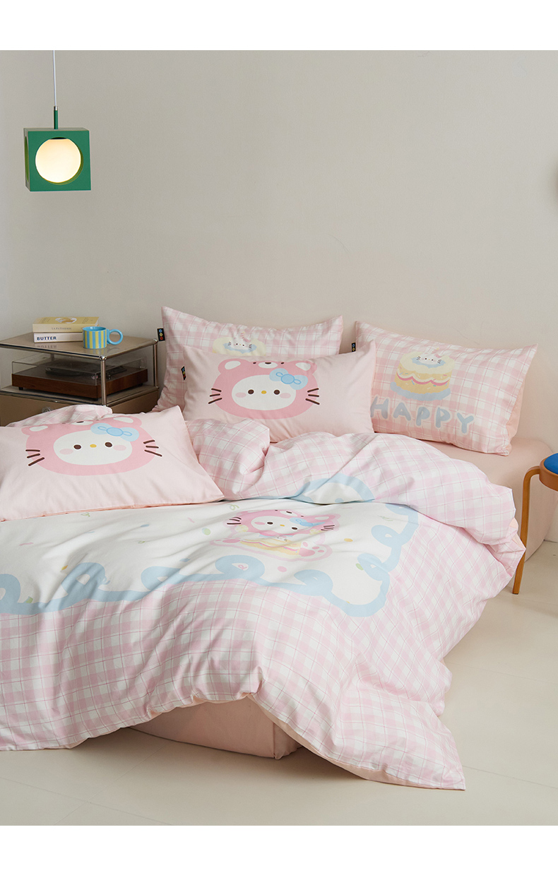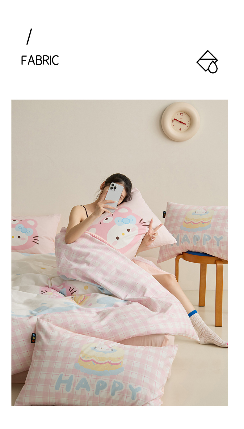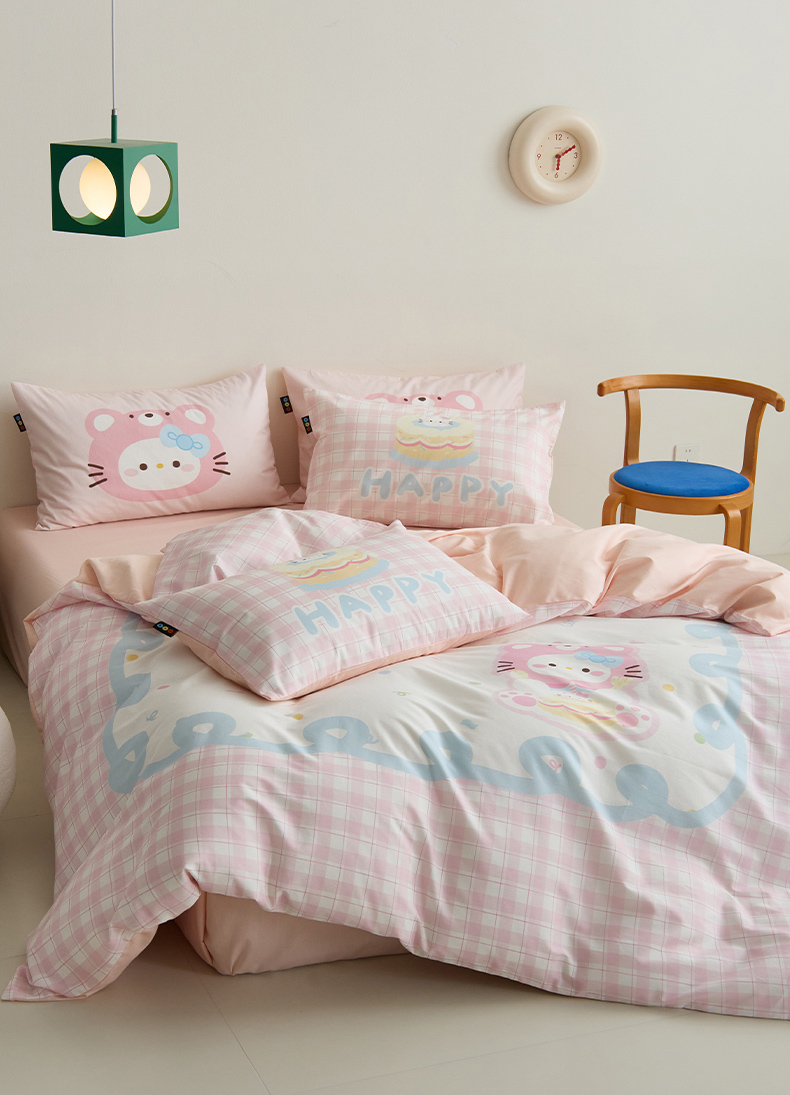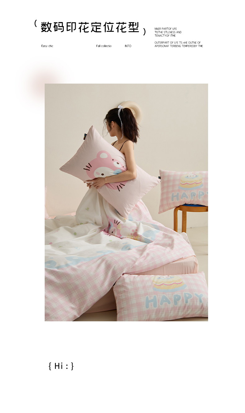商品名称:RYB红黄兰 开学季2025新款ins设计师原创13372大版卡通数码印花40s全棉纯棉三件套四件套 蛋糕小奶猫