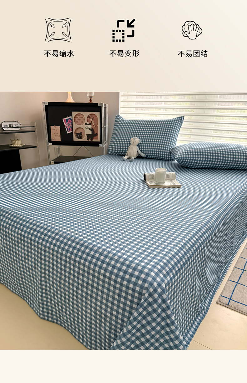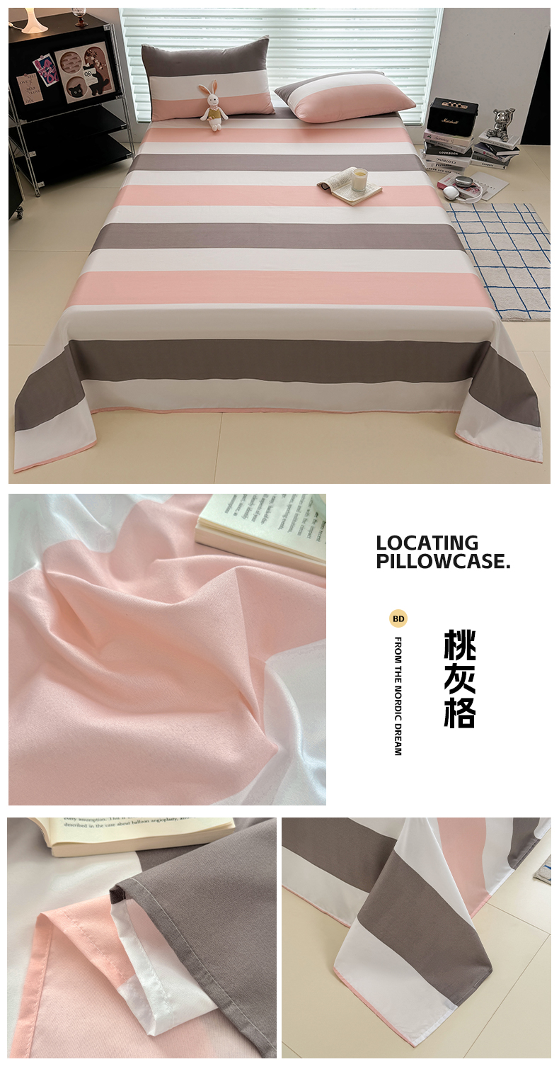 商品名称:十一家居 2025年新款ins无印风A类云朵亲肤水洗棉单床单——眠语系列 桃灰格