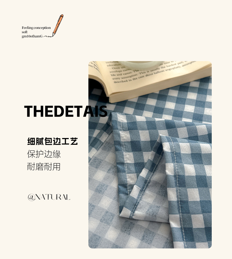 (总)十一家居 2025年秋冬新款A类亲肤云朵水洗棉无印风四件套-叙境系列,柏林蓝格+海青蓝,豆沙小格+粉玉,粉咖小格+粉玉,黑小格+铅灰,蓝咖小格+咖色,蓝小格+海青蓝,糖果小格+海青蓝,桃灰格+卡其