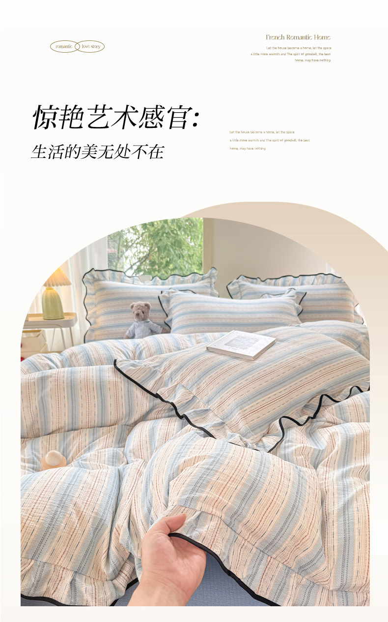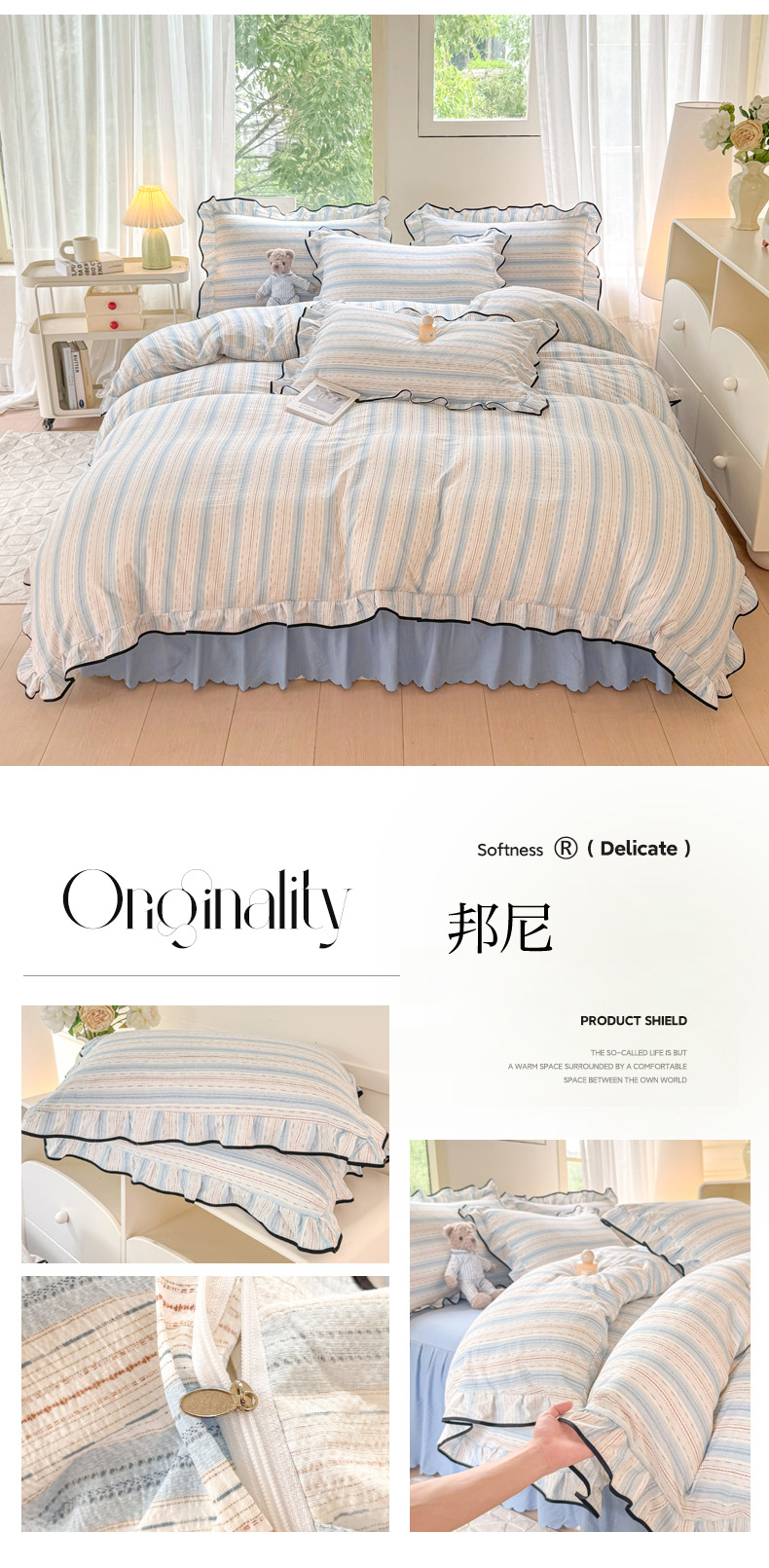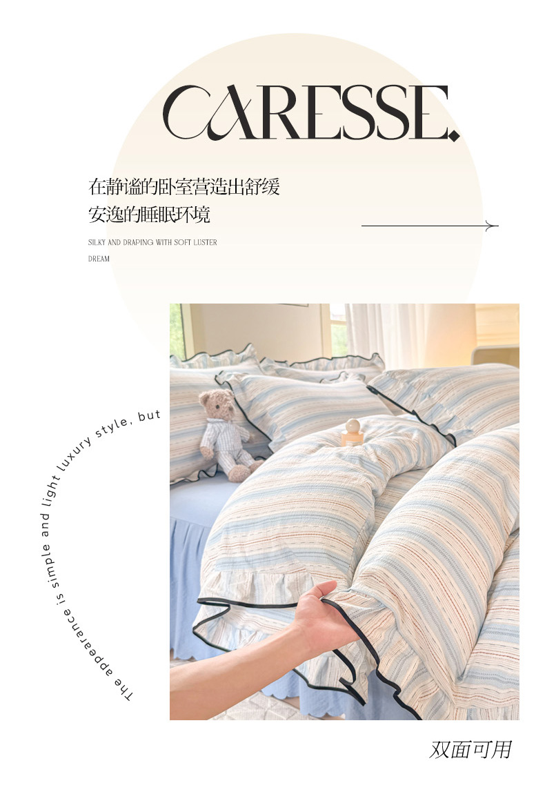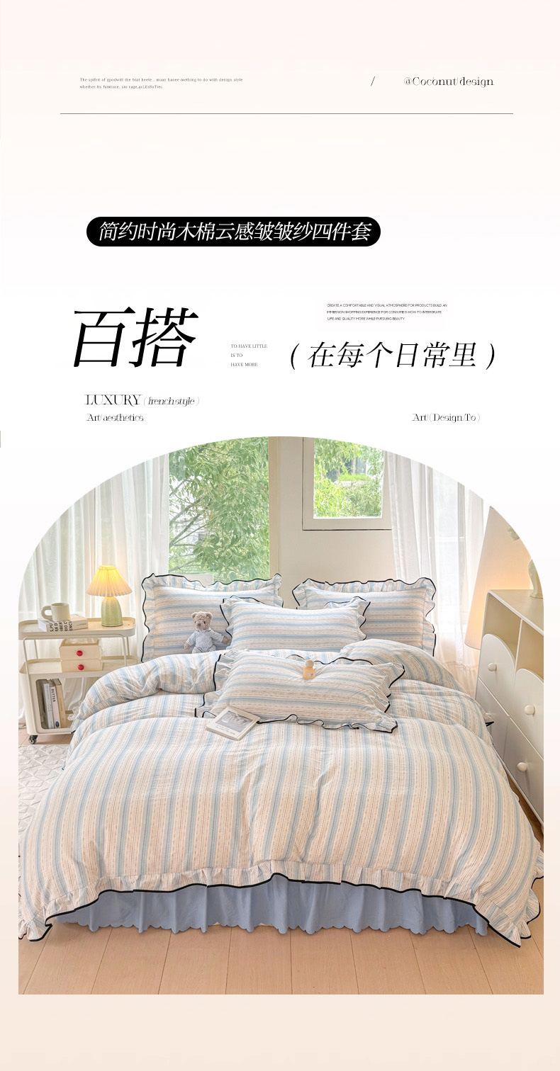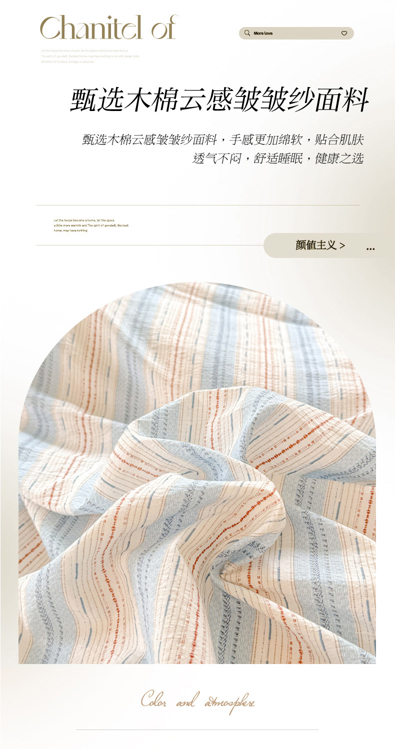 当前位置: 91家纺网 > 商品网购 > 床品套件 > 四件套 > 双层纱四件套 > 上尚居 2025新款简约时尚木棉云感皱皱纱四件套 邦尼