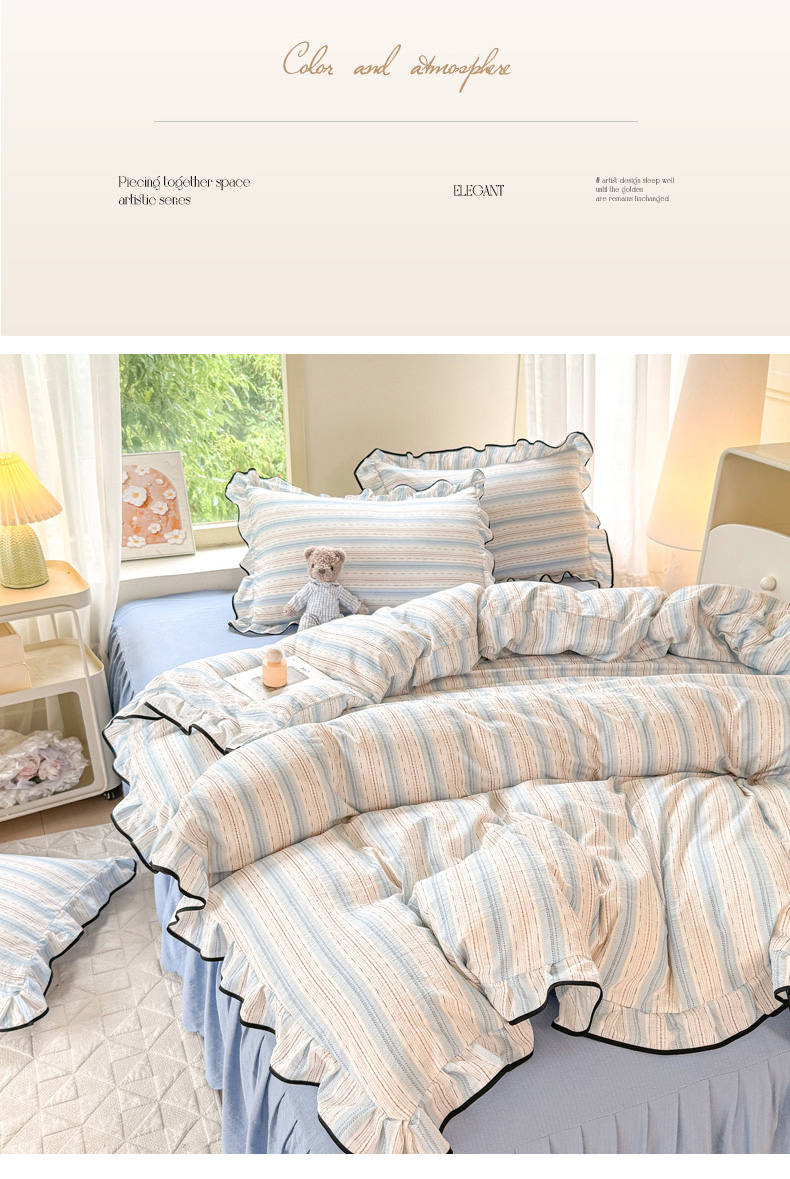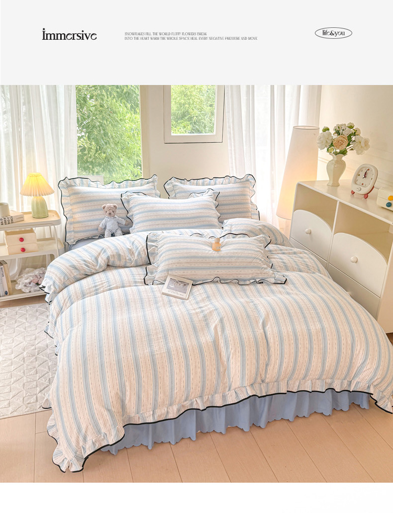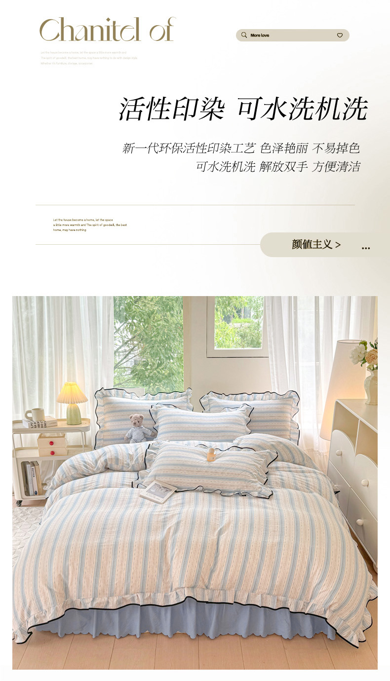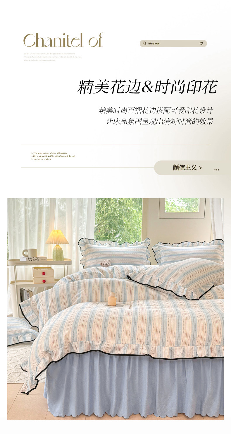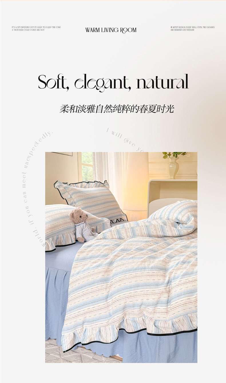 当前位置: 91家纺网 > 商品网购 > 床品套件 > 四件套 > 双层纱四件套 > 上尚居 2025新款简约时尚木棉云感皱皱纱四件套 邦尼