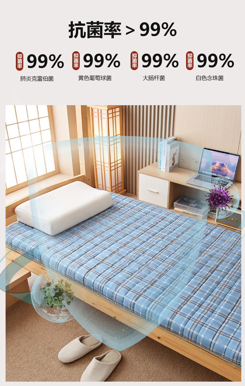 商品名称:暖季2025新款A类无印风学生款 棉花床垫 简兮蓝