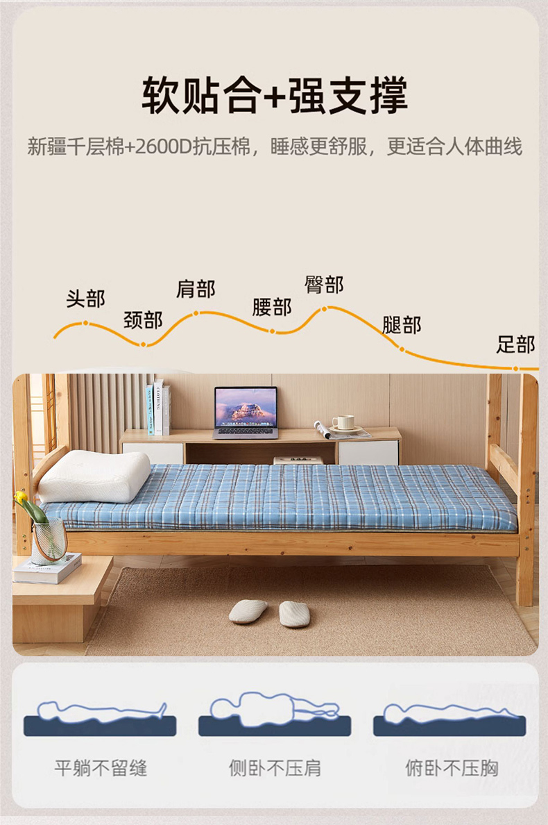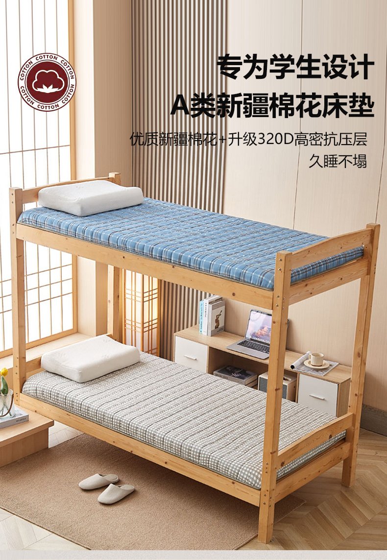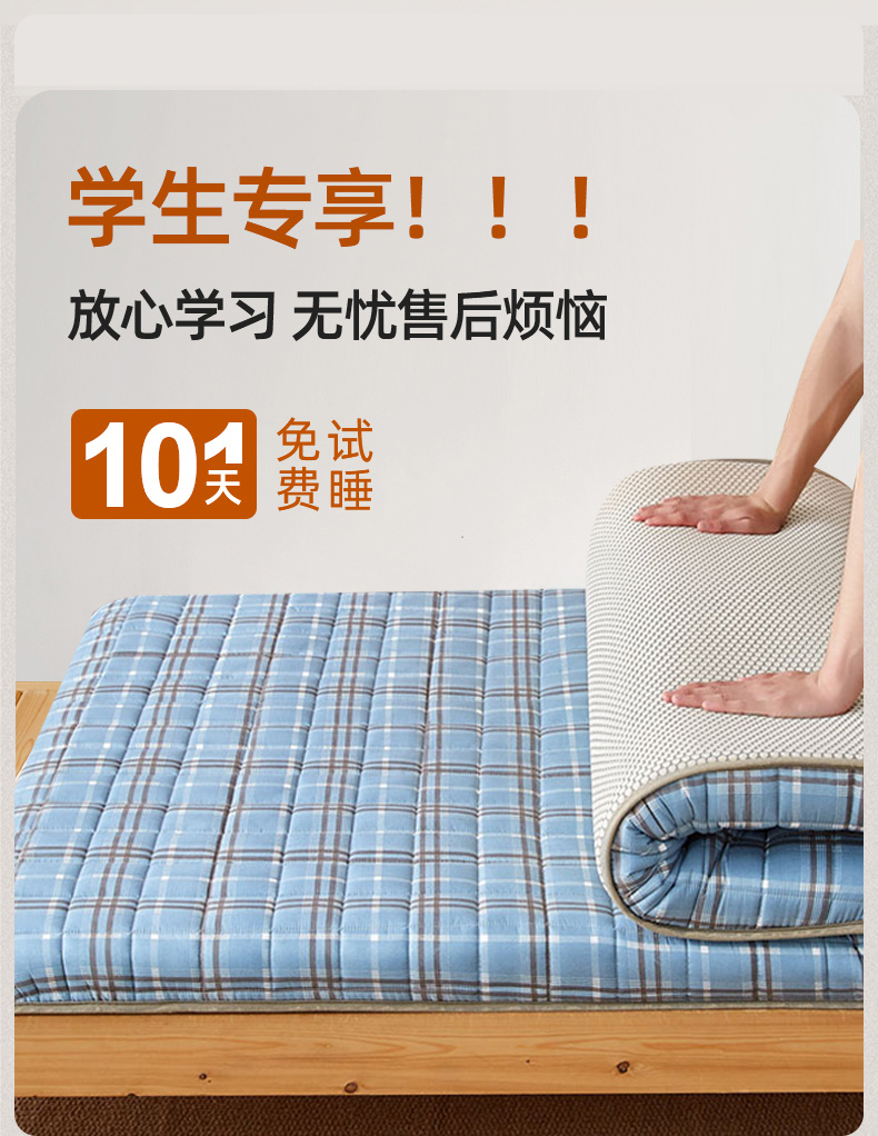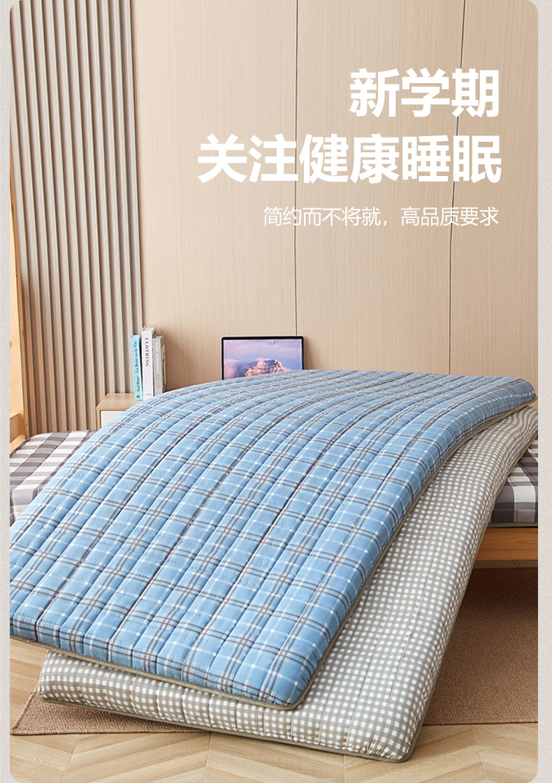 暖季2025新款A类无印风学生款 棉花床垫 简兮蓝