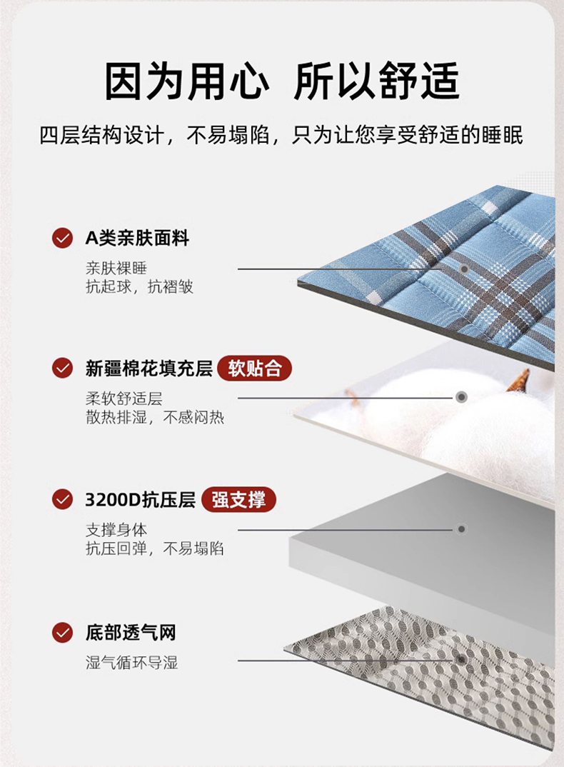 (总)暖季家纺 2025新款零压深睡眠学生记忆棉针织棉提花床垫,凌悦,清韵,云逸,素致