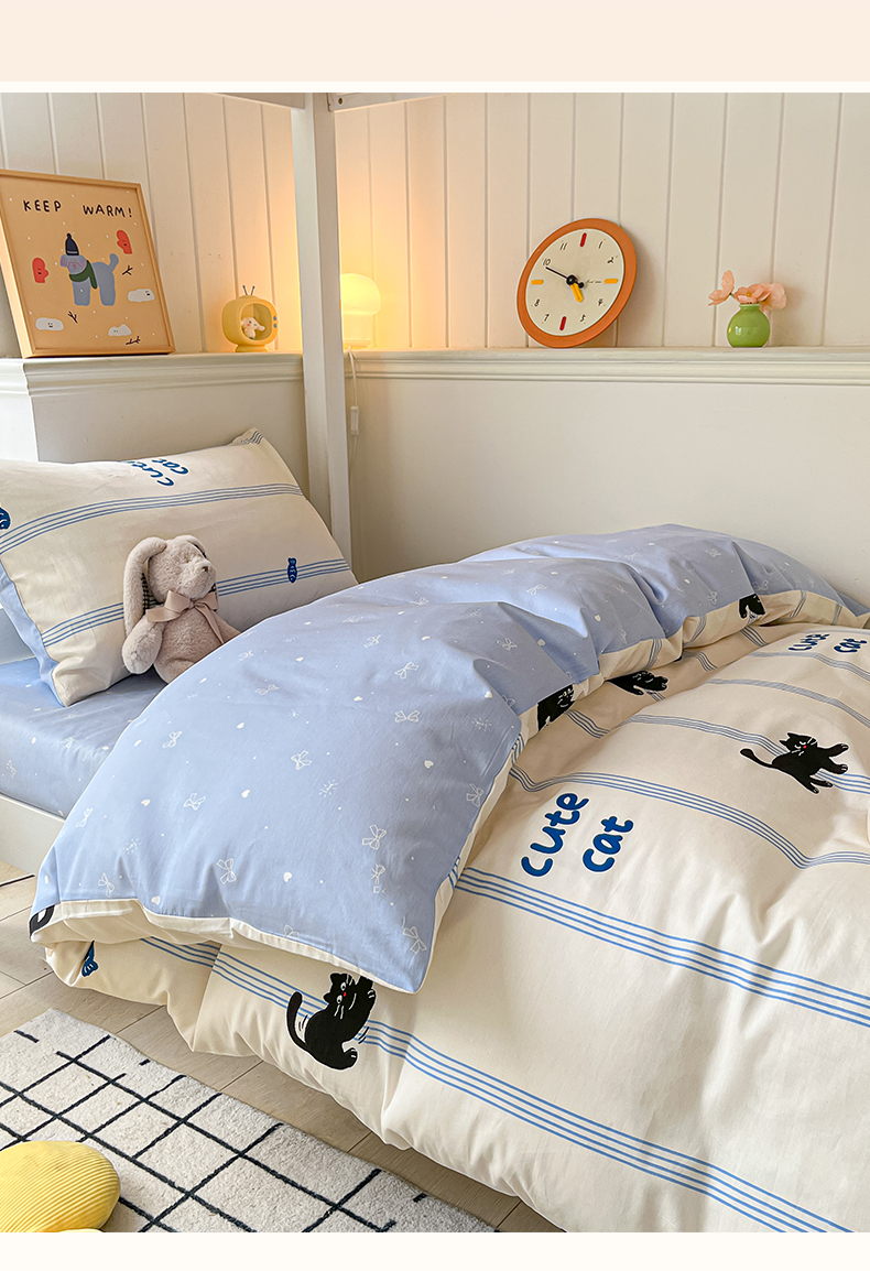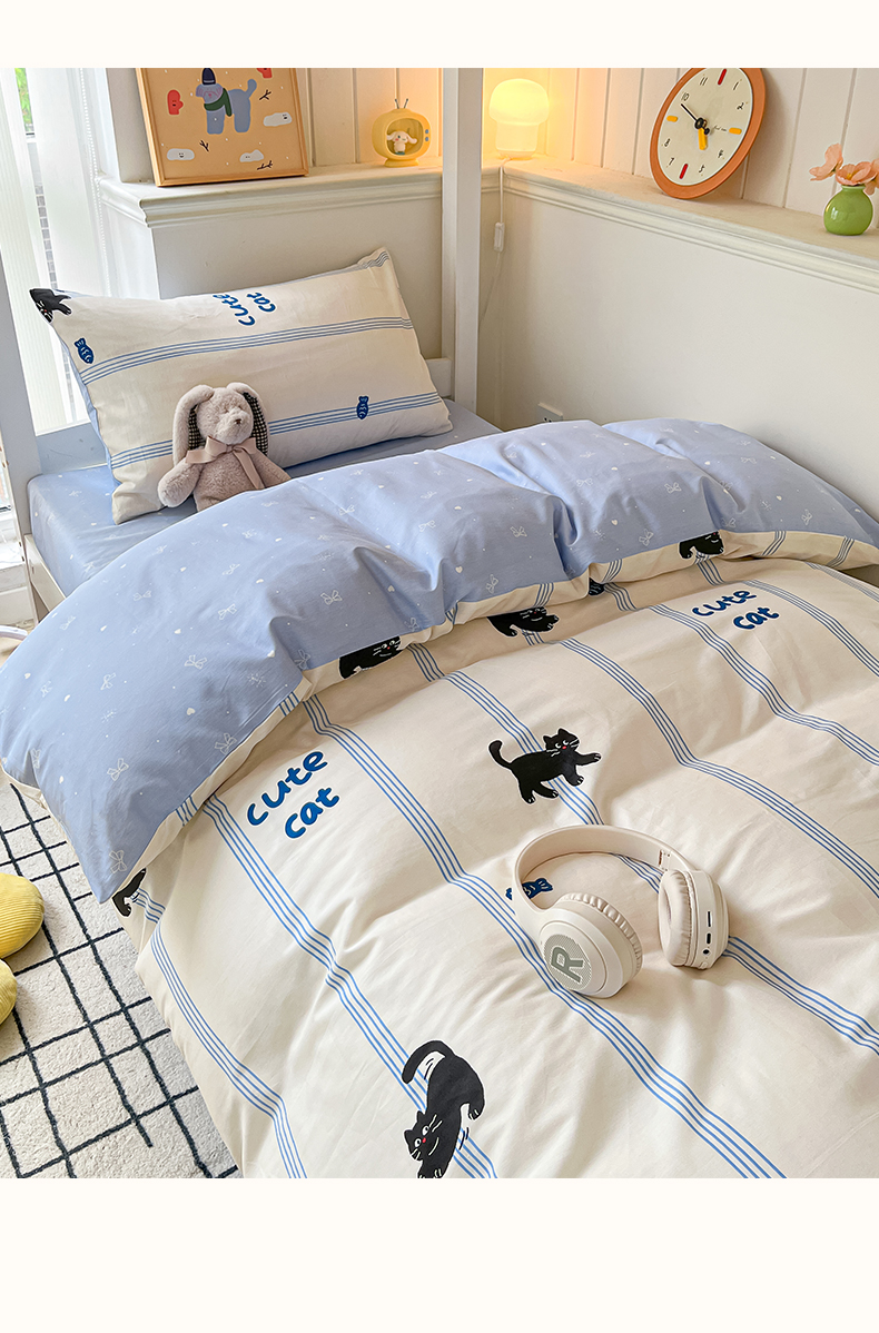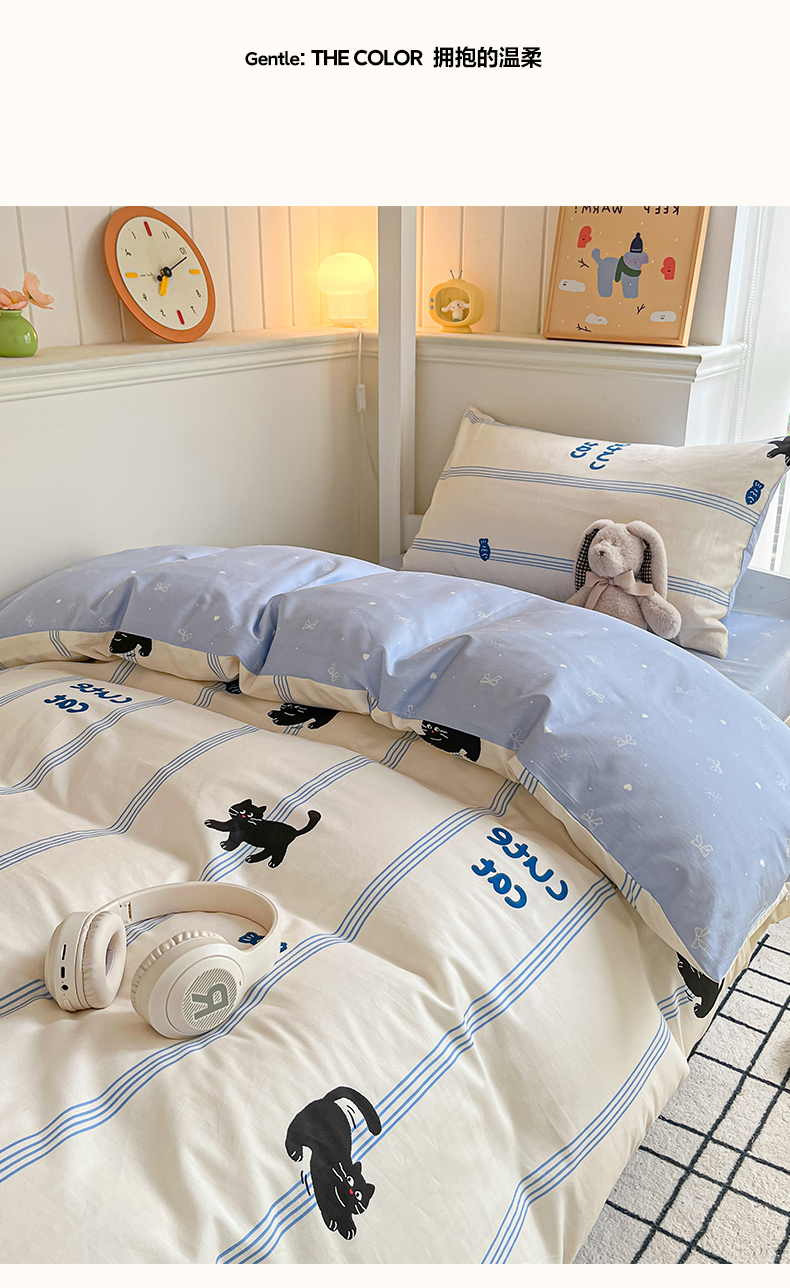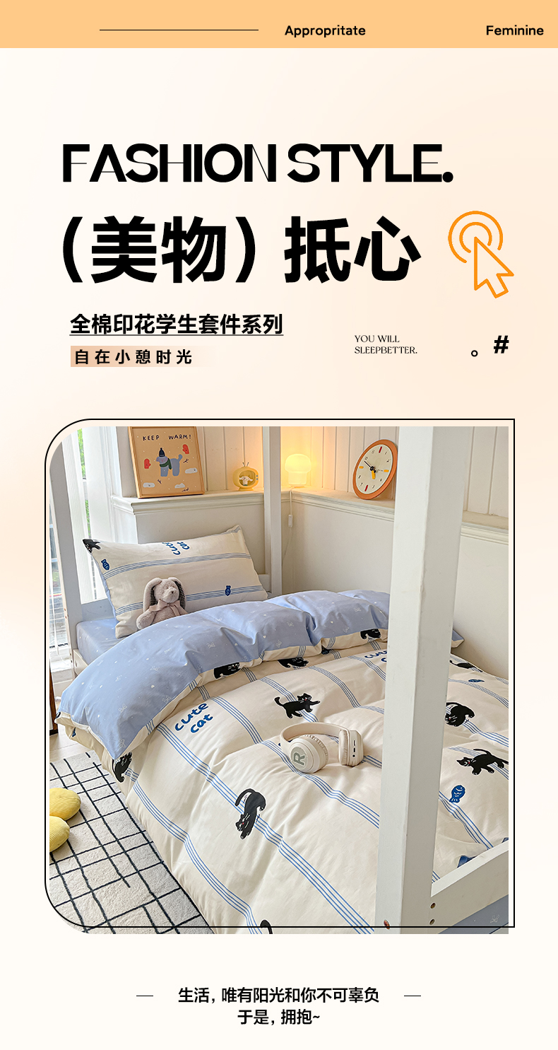 当前位置: 91家纺网 > 商品网购 > 床品套件 > 三件套 > 雅居纺家纺 2025新款全棉纯棉印花系列学生宿舍三四件套上下铺三件套 可爱小猫