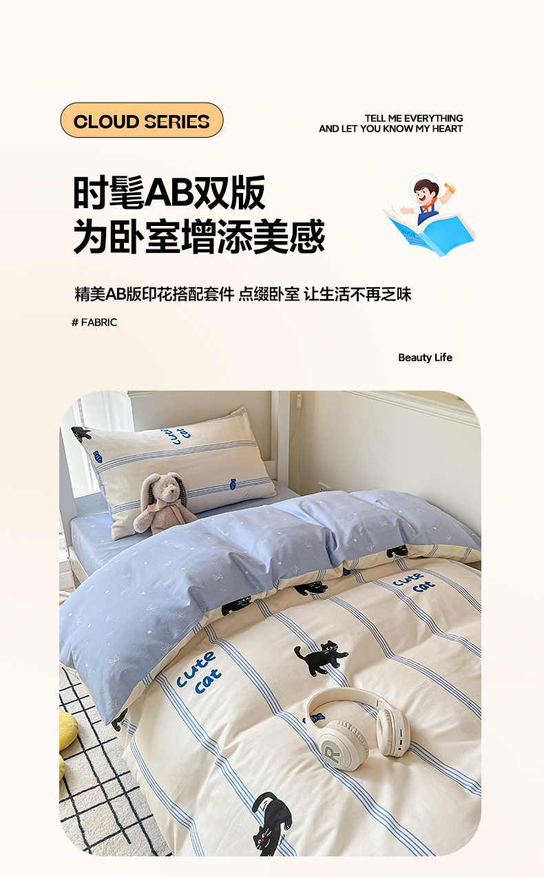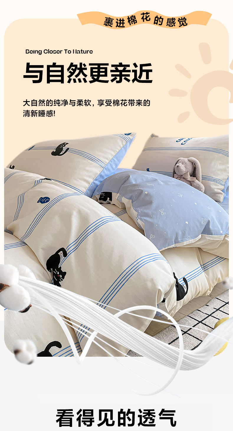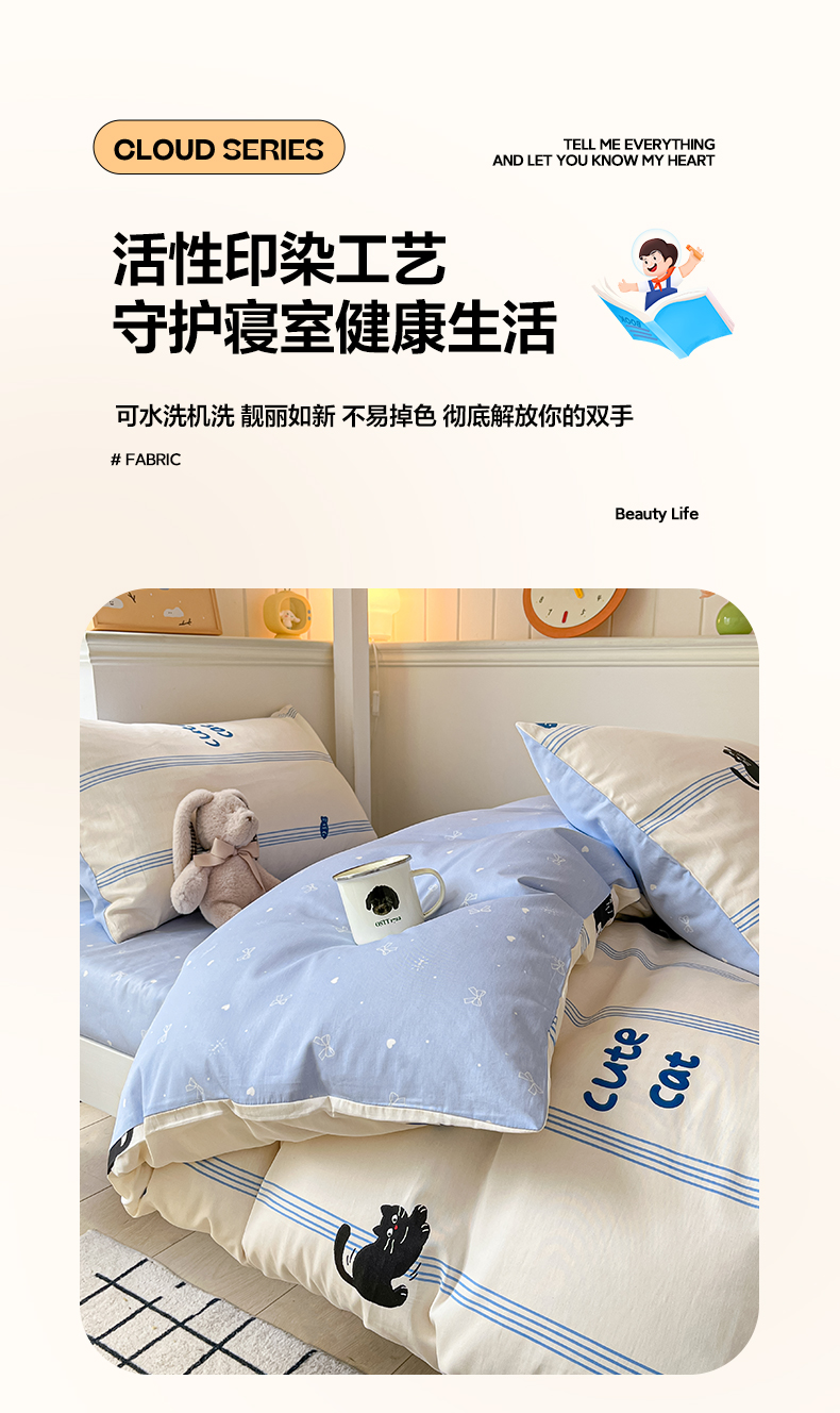 当前位置: 91家纺网 > 商品网购 > 床品套件 > 三件套 > 雅居纺家纺 2025新款全棉纯棉印花系列学生宿舍三四件套上下铺三件套 可爱小猫
