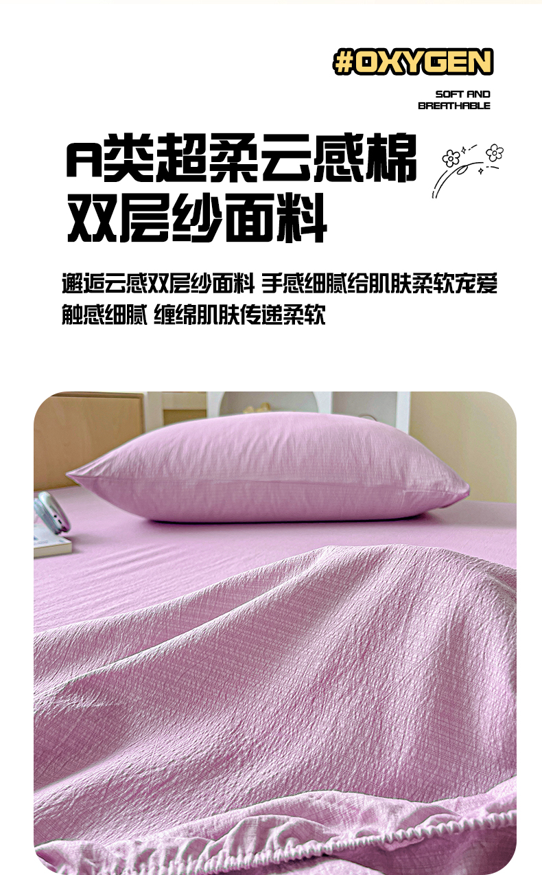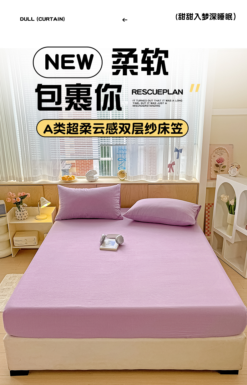 彩韵家纺 2025新款超柔云感双层纱床笠 双层纱-紫色
