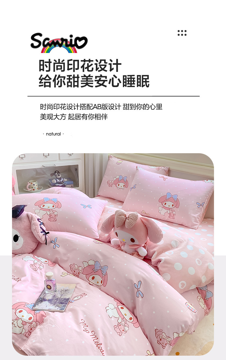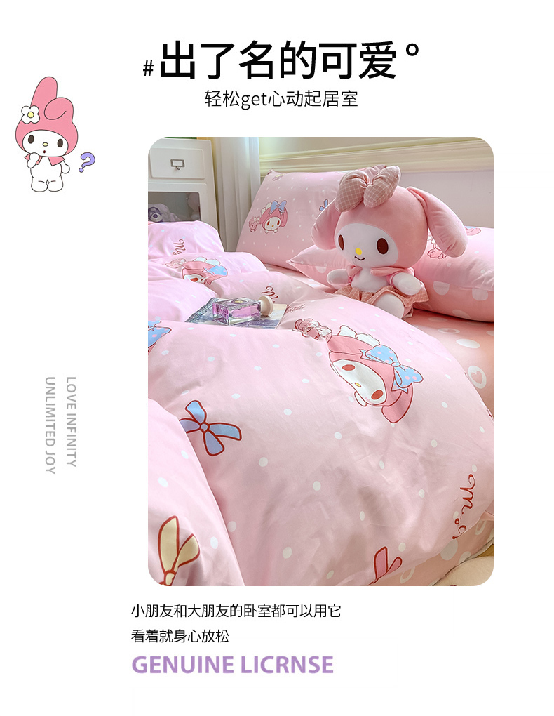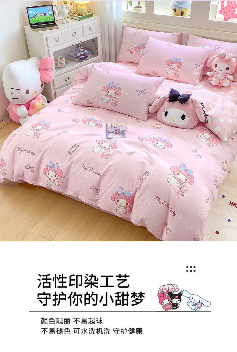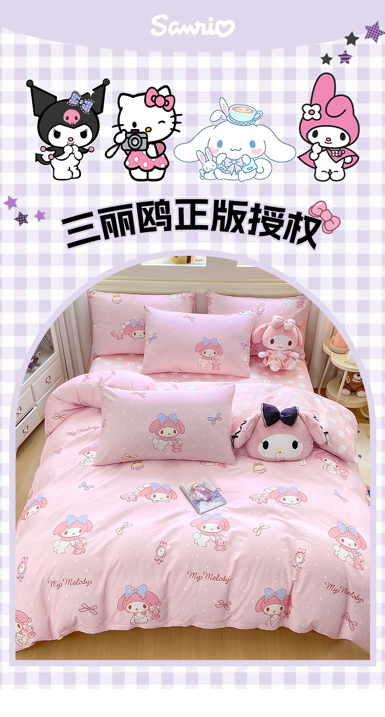 当前位置: 91家纺网 > 商品网购 > 床品套件 > 四件套 > 全棉普通四件套 > 博雅 2025新款全棉三丽鸥全棉四件套-小版 小兔美乐蒂