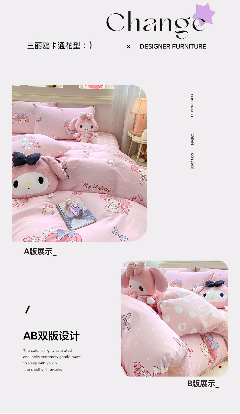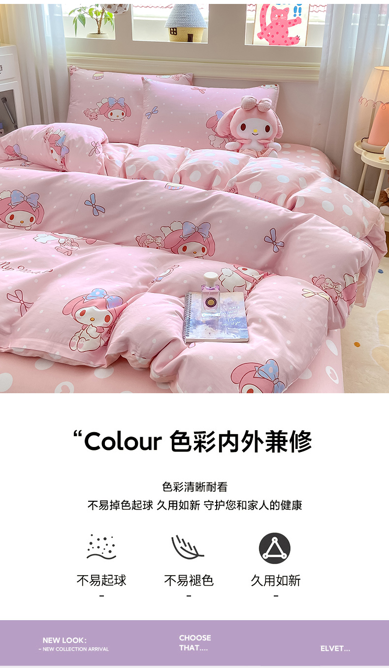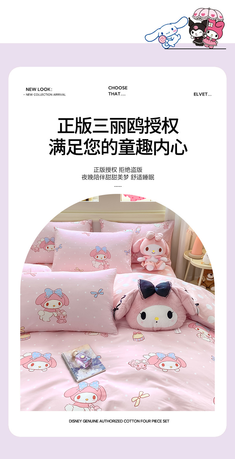 当前位置: 91家纺网 > 商品网购 > 床品套件 > 四件套 > 全棉普通四件套 > 博雅 2025新款全棉三丽鸥全棉四件套-小版 小兔美乐蒂