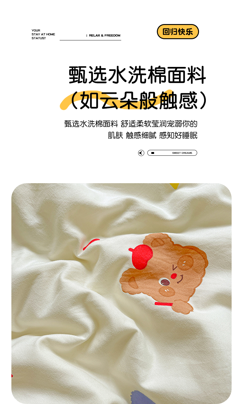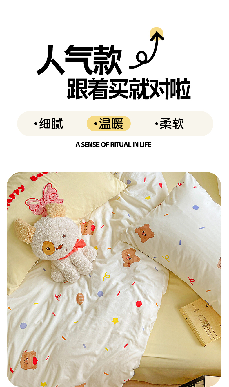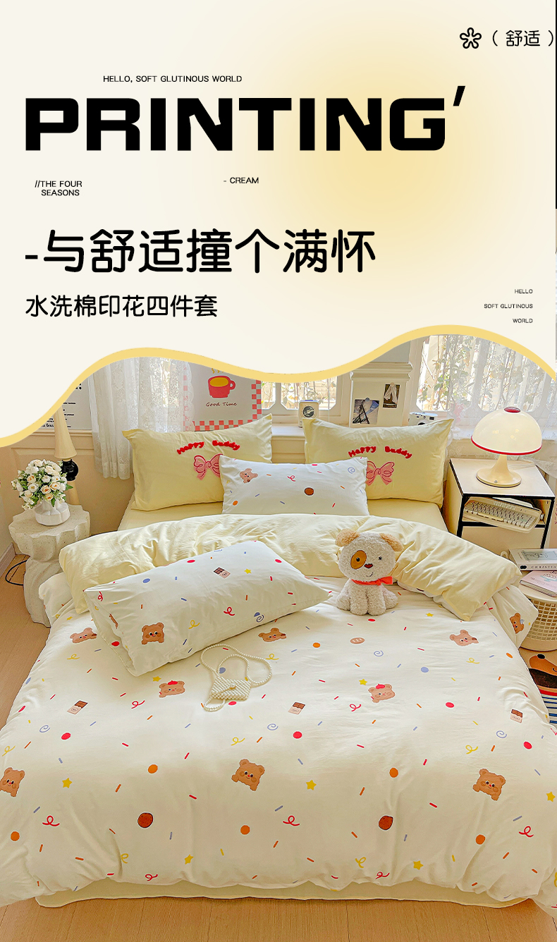 当前位置: 91家纺网 > 商品网购 > 床品套件 > 四件套 > 水洗棉四件套 > 布可家纺 2025新款水洗棉时尚印花四件套 饼干熊
