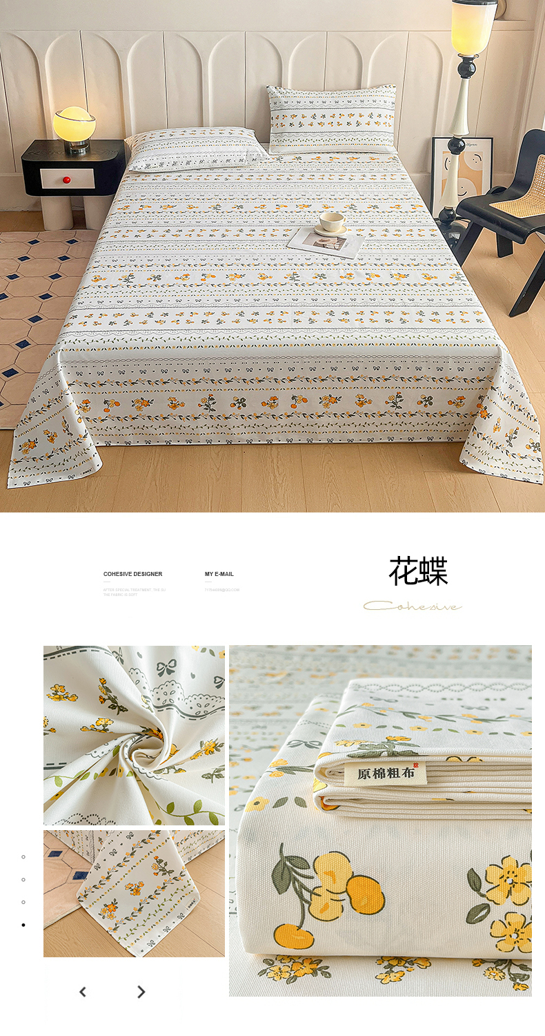 • 91家纺网 家纺一手货源 找家纺 棉乐町家居2025新款工艺款老粗布床单(量大从优) 花蝶