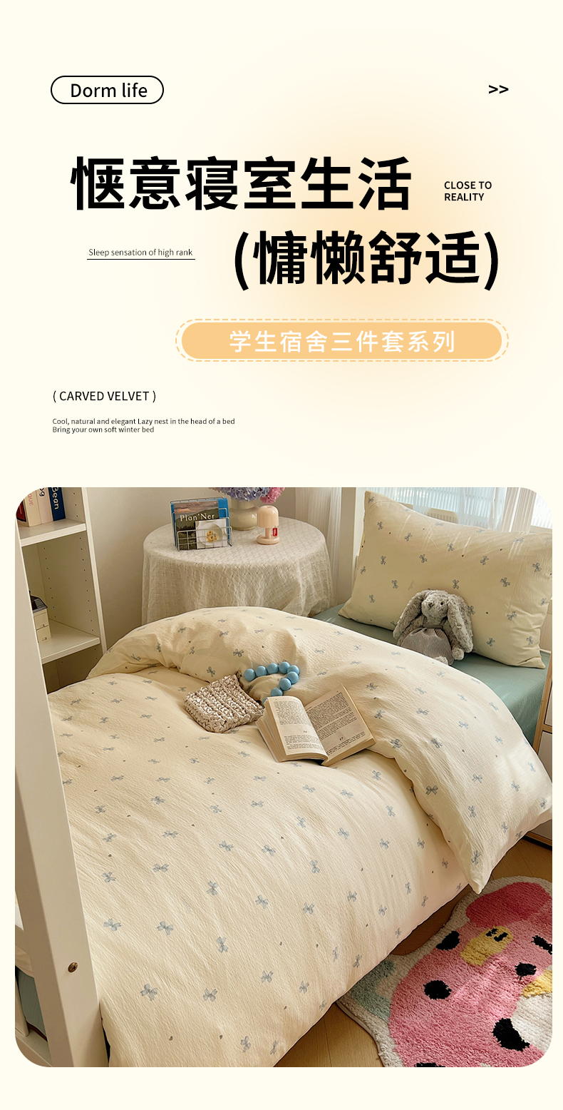 商品名称:(总)繁花家居 2025新款木棉爆款学生床三件套四件套跑量款