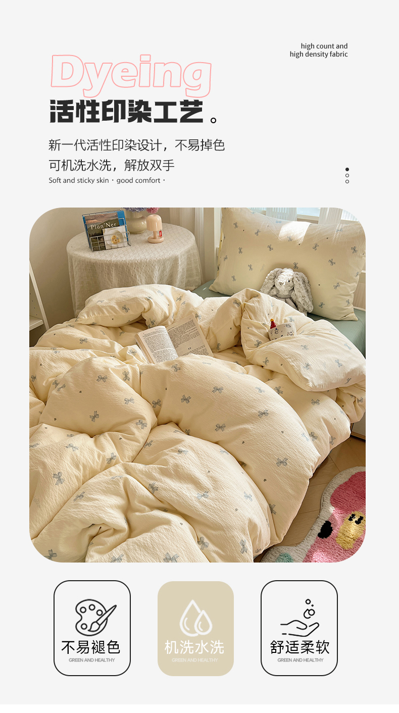 (总)繁花家居 2026简单款水洗棉四件套学生床三件套,小软猫,曲线蝴蝶结,芭乐可丽卷,粉格-小花熊,粉格小豹纹,咖腊肠狗,咖心小熊,红格撞青,幻想乐园