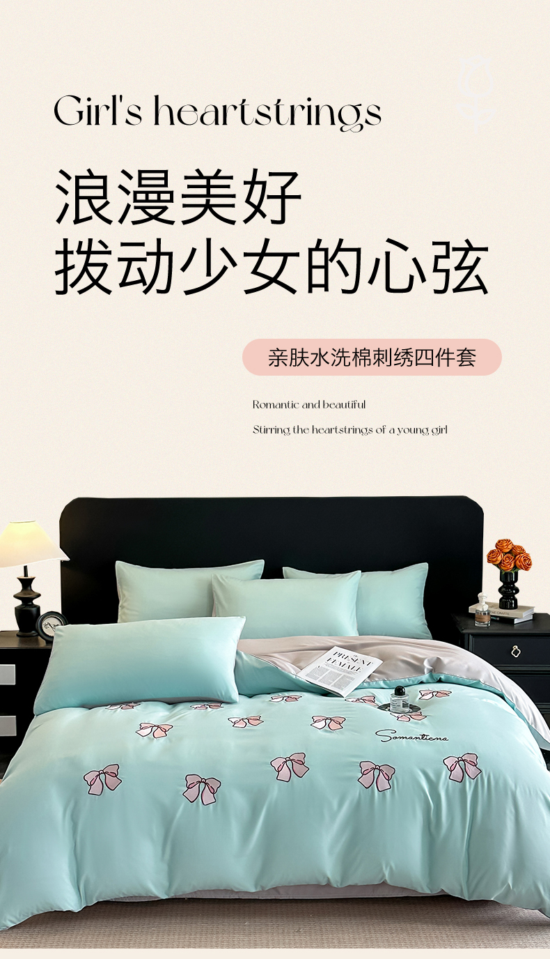当前位置: 91家纺网 > 商品网购 > 床品套件 > 四件套 > 水洗棉四件套 > 小久久(小九九) 2025新款亲肤水洗棉刺绣满绣四件套 蝴蝶结-繁星兰+山灰