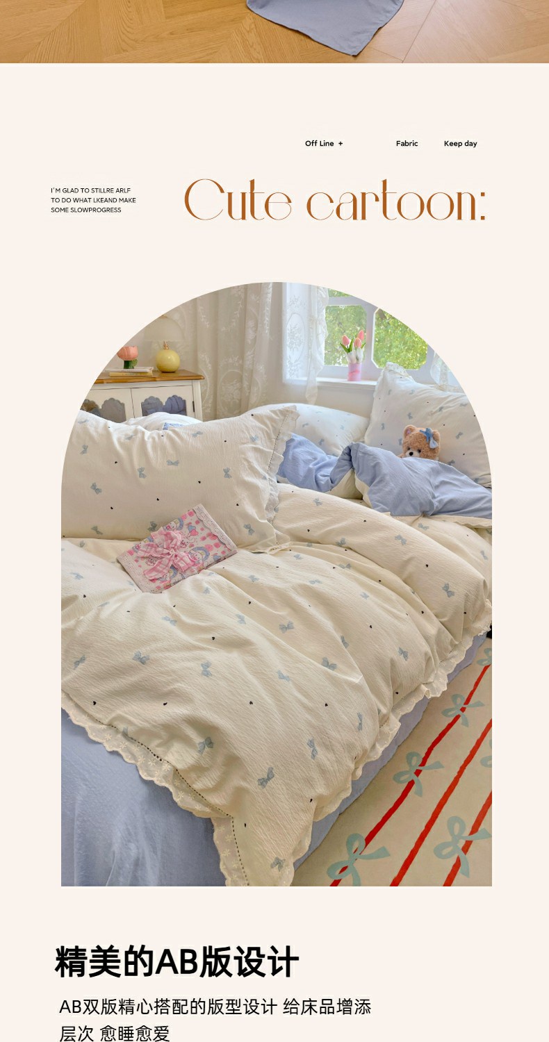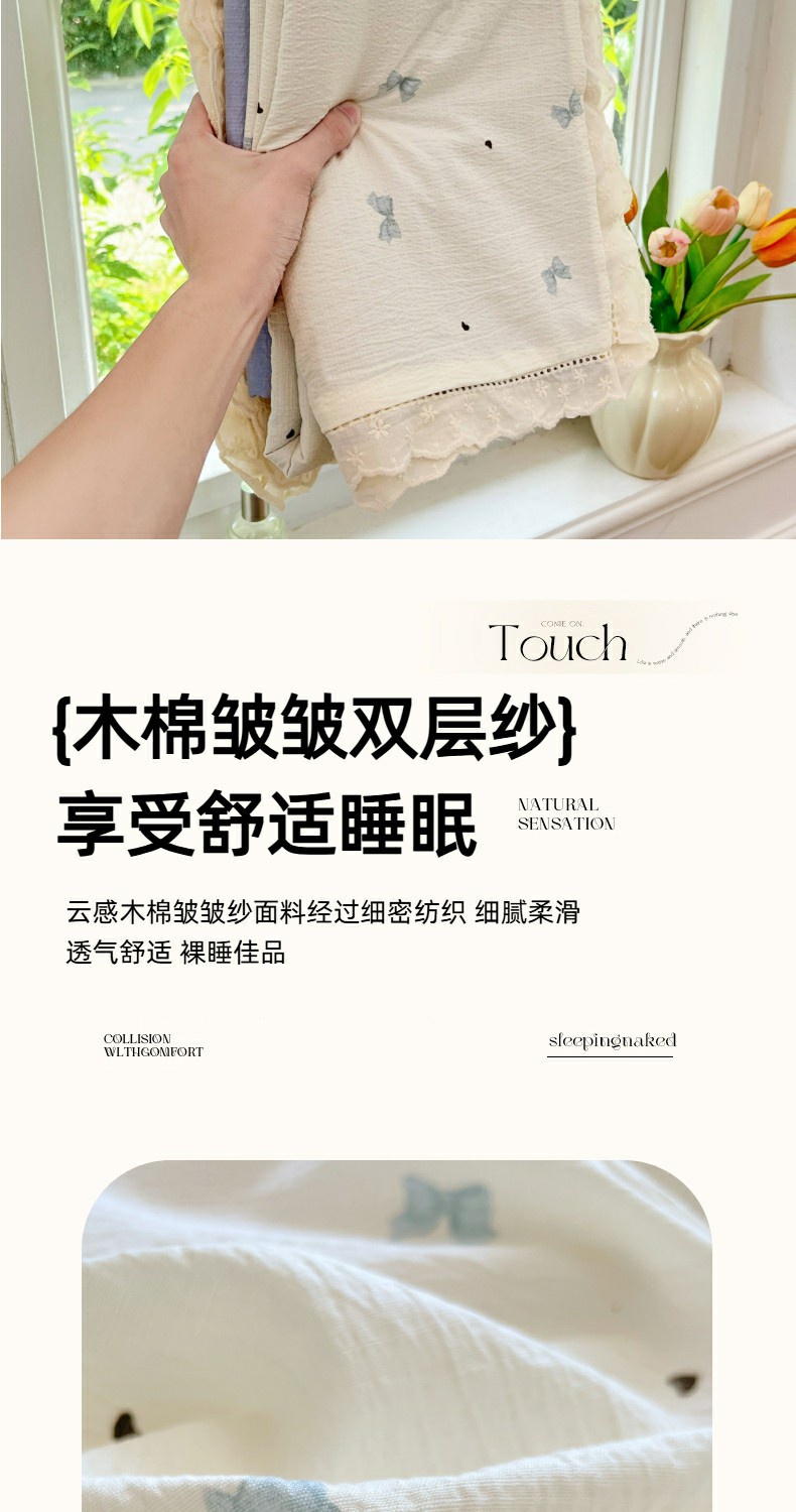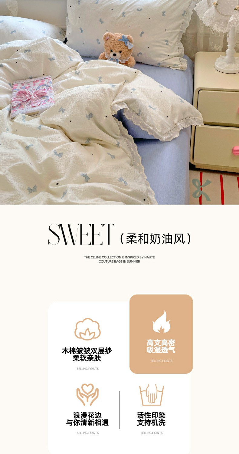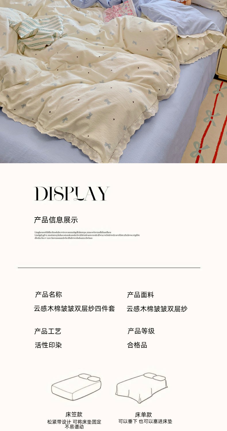 当前位置: 91家纺网 > 商品网购 > 床品套件 > 四件套 > 全棉普通四件套 > 优佳优品 2025新款A类云感木棉皱皱双层纱全棉镂空花边四件套(提供买家秀) 蝴蝶蓝
