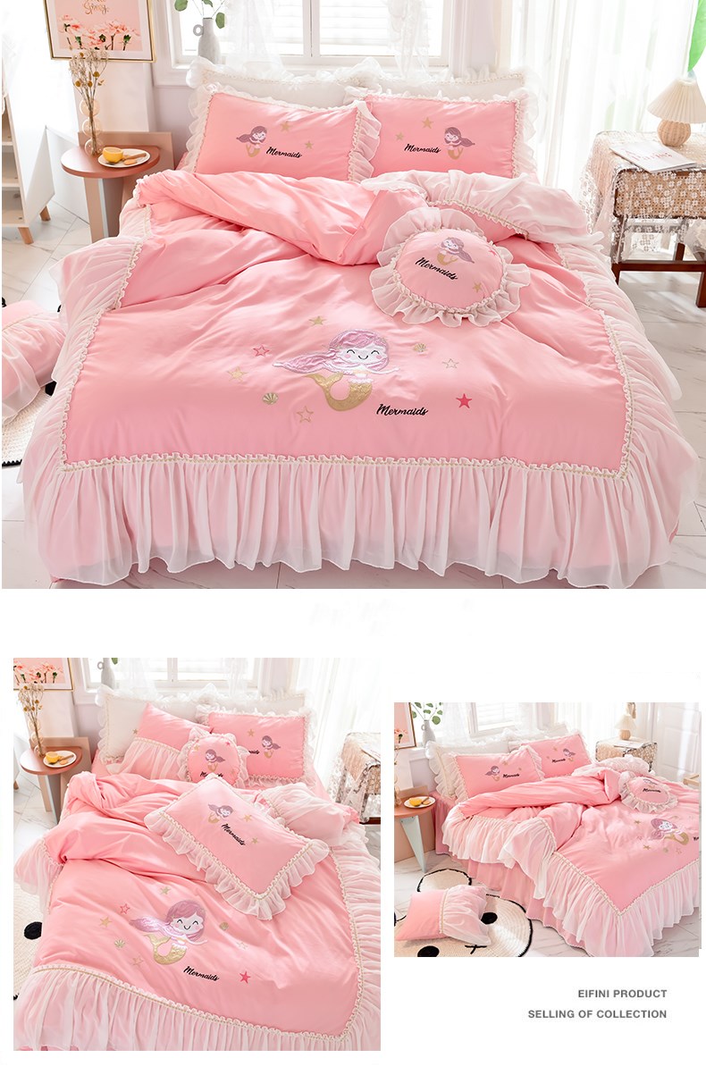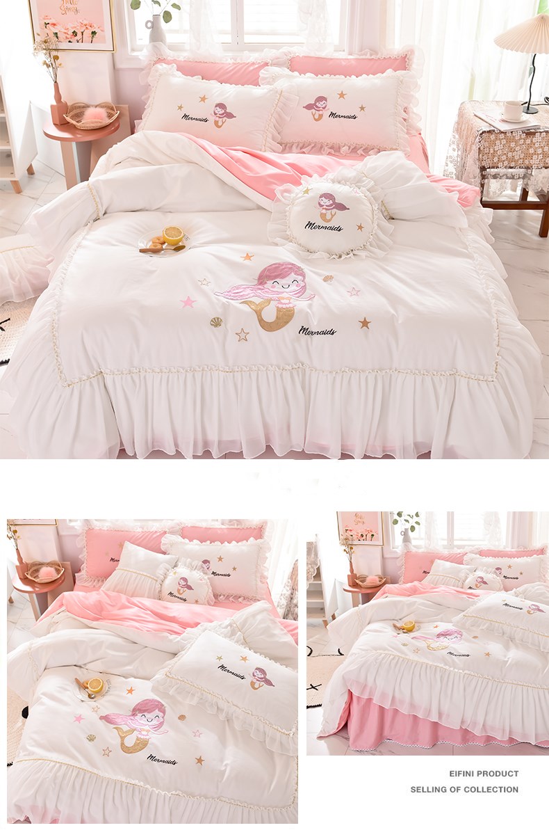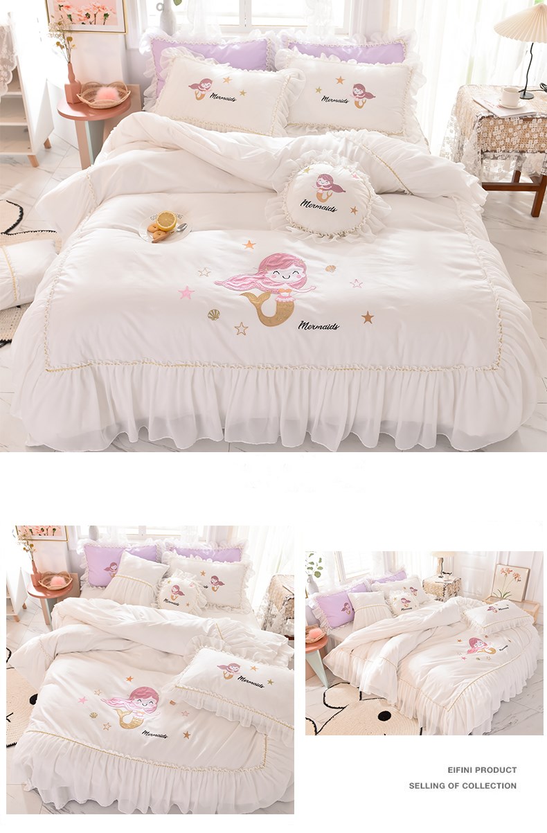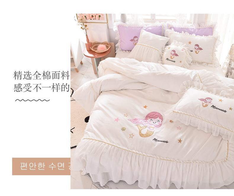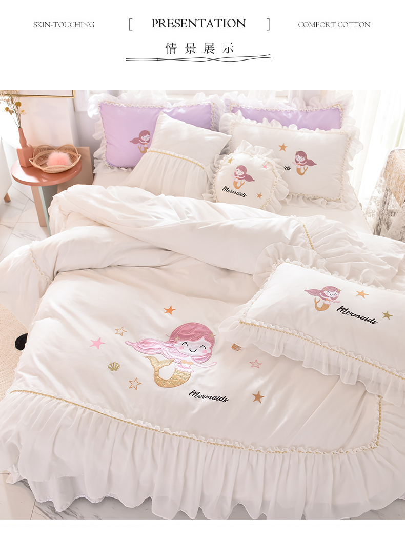 (总)花香四季家纺 2025新款13376纯棉贴布刺绣雪纺纱四件套-人鱼小姐
