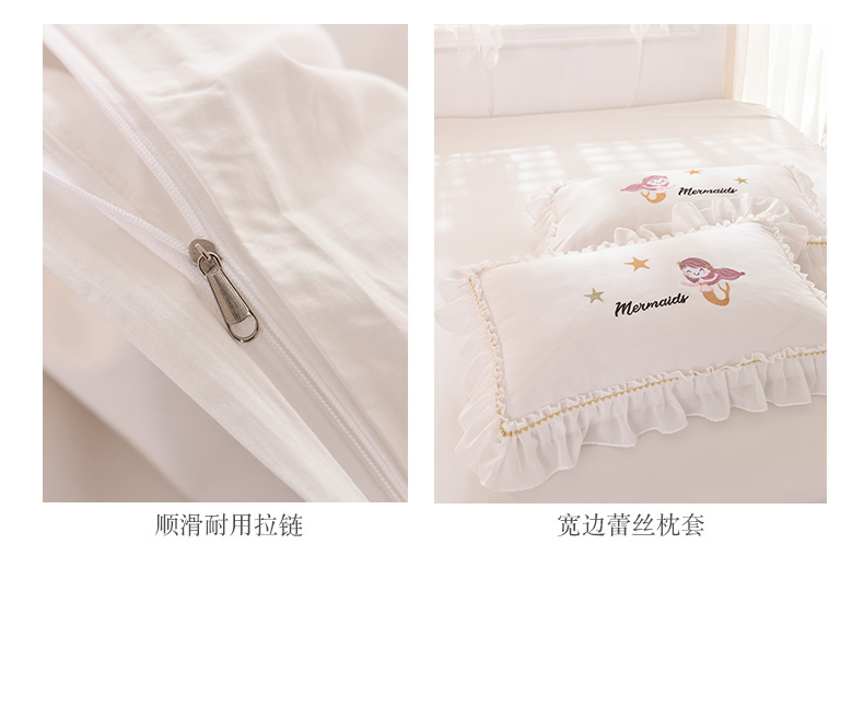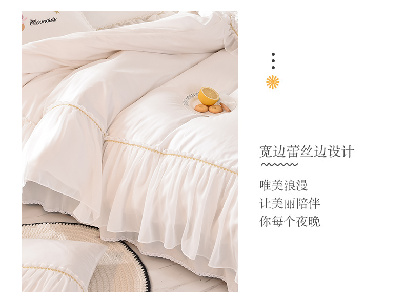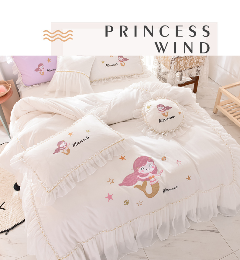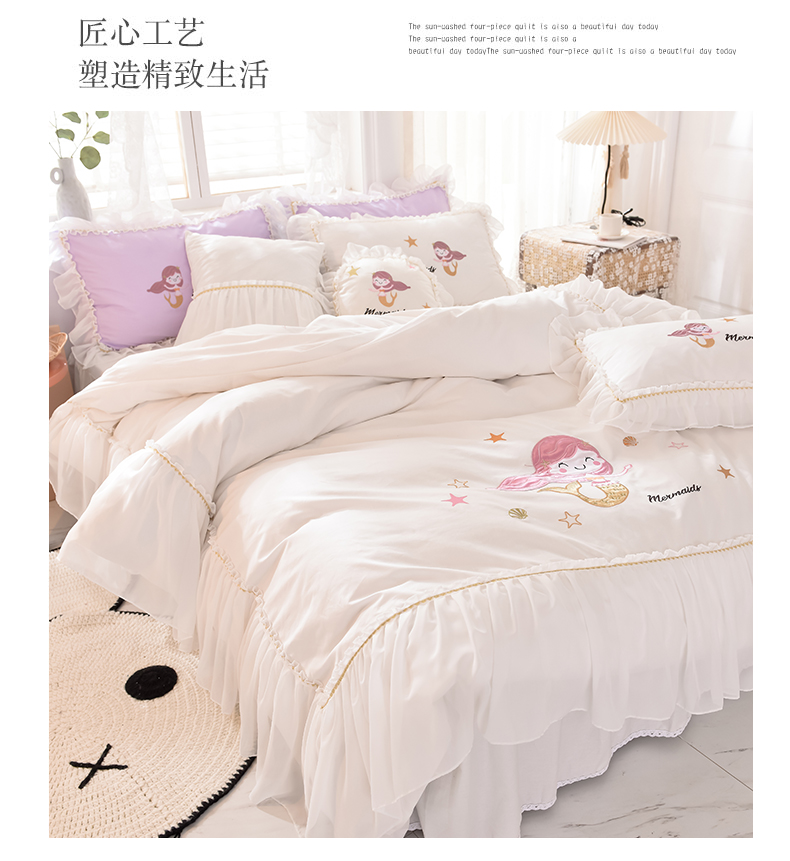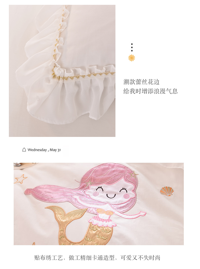 商品名称:(总)花香四季家纺 2025新款13376纯棉贴布刺绣雪纺纱四件套-人鱼小姐