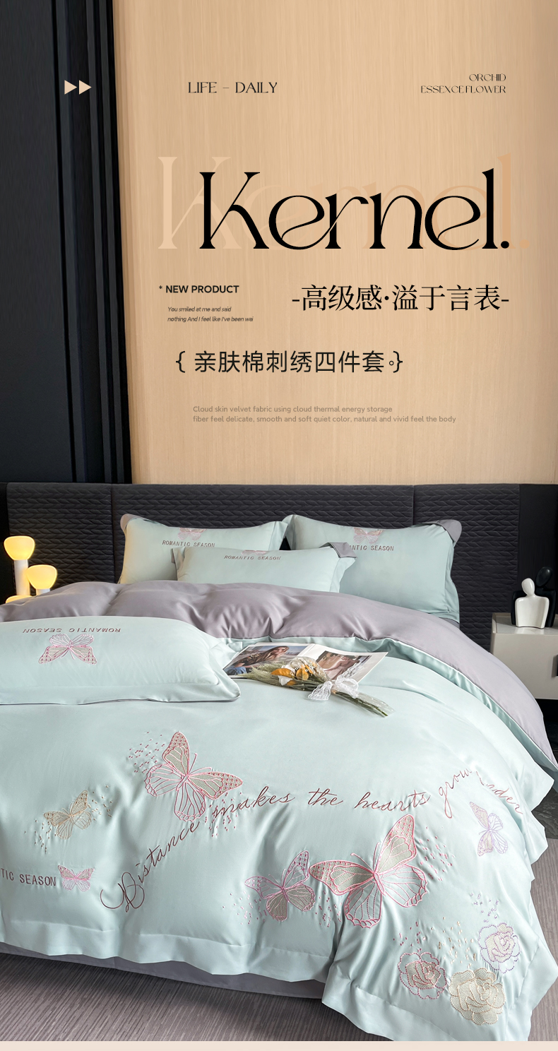 当前位置: 91家纺网 > 商品网购 > 床品套件 > 四件套 > 其它四件套 > 青柚 2025新款梦蝶亲肤棉刺绣四件套(小号不低于98元,标准不低于138,加大不低于148,以此类推,低价必投不撤销) 梦蝶-飘蓝