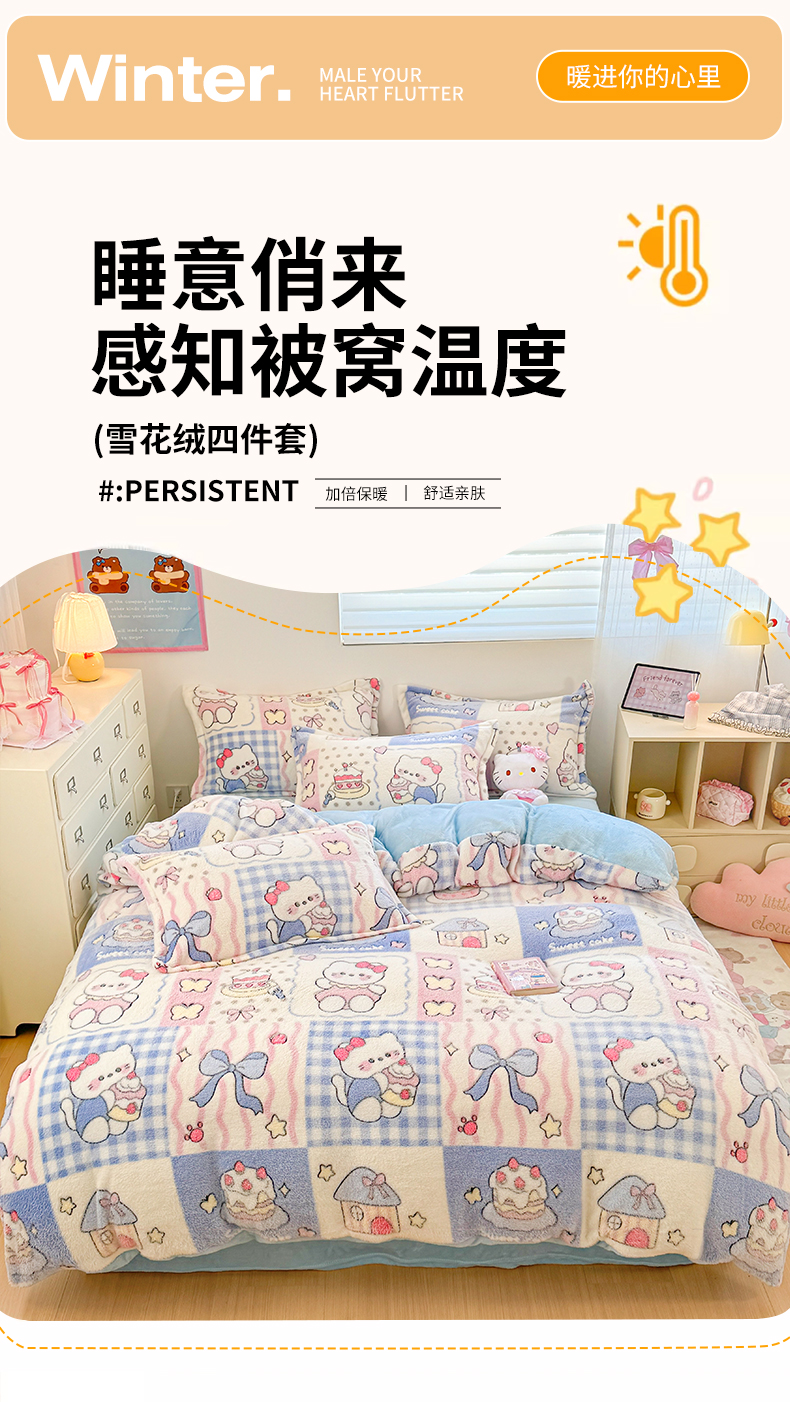 当前位置: 91家纺网 > 商品网购 > 床品套件 > 四件套 > 其它四件套 > 川悦生活 2025新款立体雪花绒印花大床四件套系列二场景一 小喵甜心