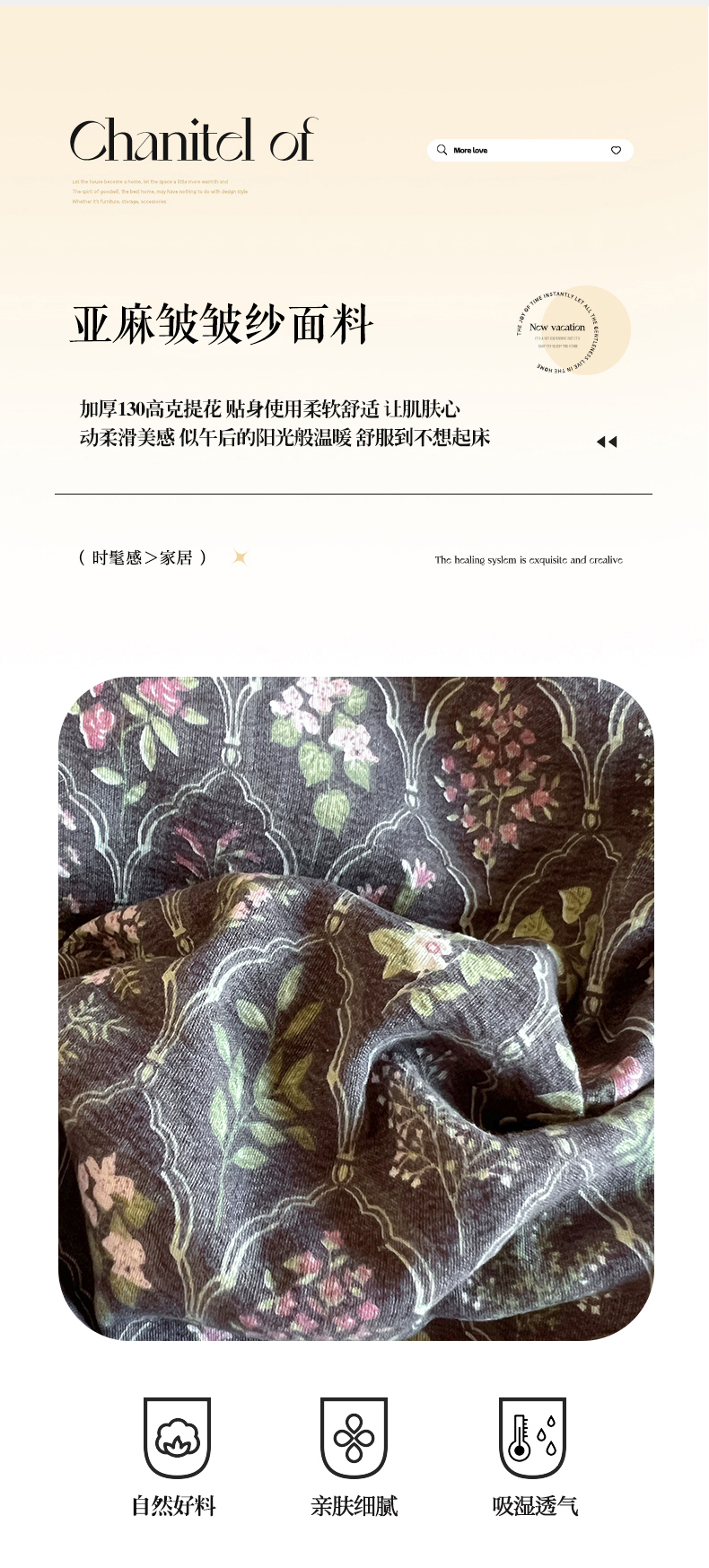 商品名称:美梦家纺 2025新款高克重加厚亚麻皱皱纱床盖四件套系列(提供买家秀) 谧境