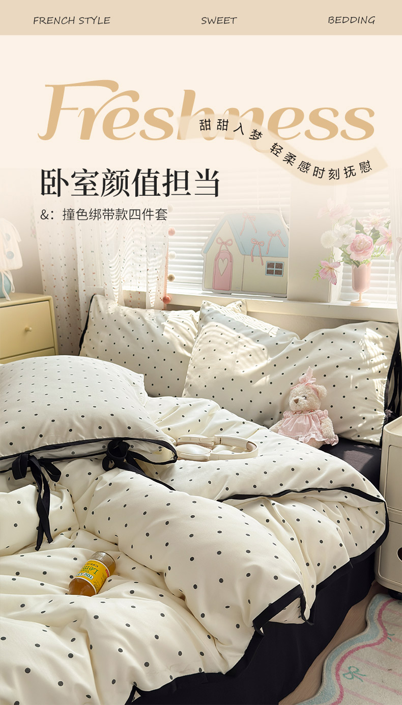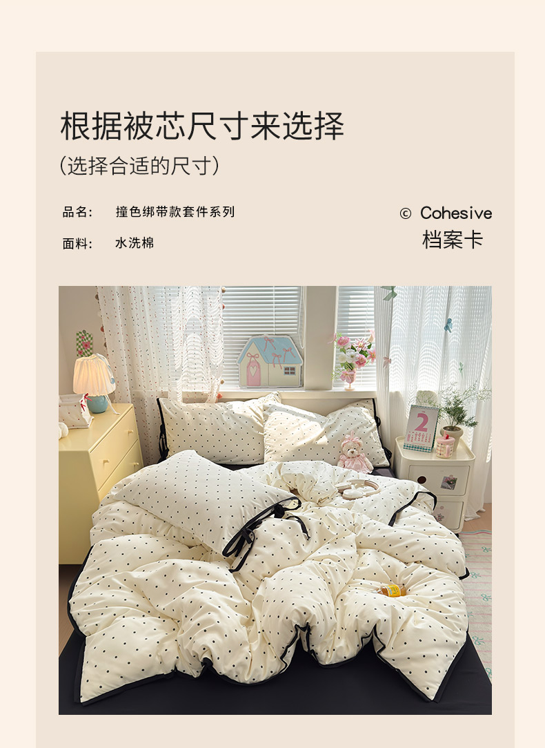 (总)尤米 2025新款水洗棉撞色绑带款四件套