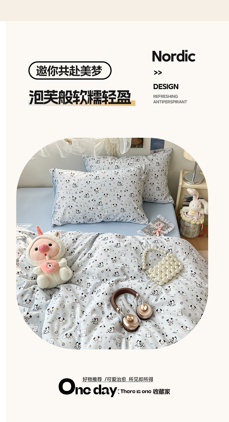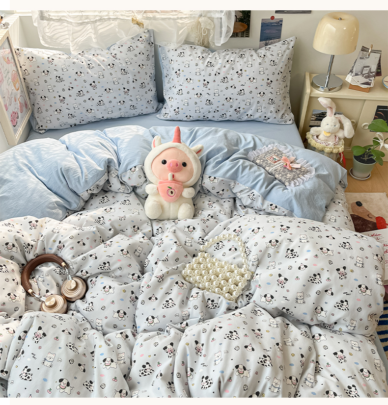 当前位置: 91家纺网 > 商品网购 > 床品套件 > 四件套 > 水洗棉四件套 > 卡迪熊家纺 2025新款水洗双层纱双拼碎花四件套 欢乐小狗