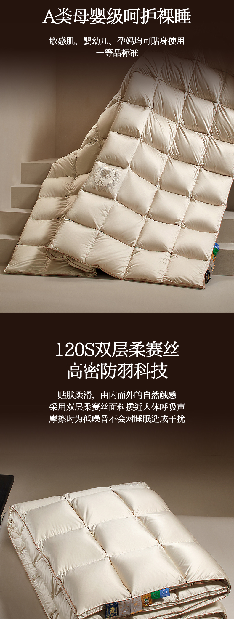 商品名称:织梦人羽绒工厂店2025新款羽绒被壳 贵夫人真丝缎-米白