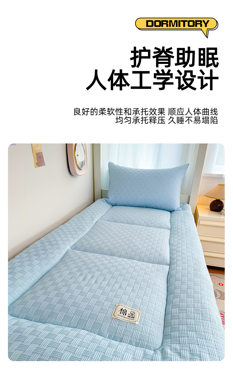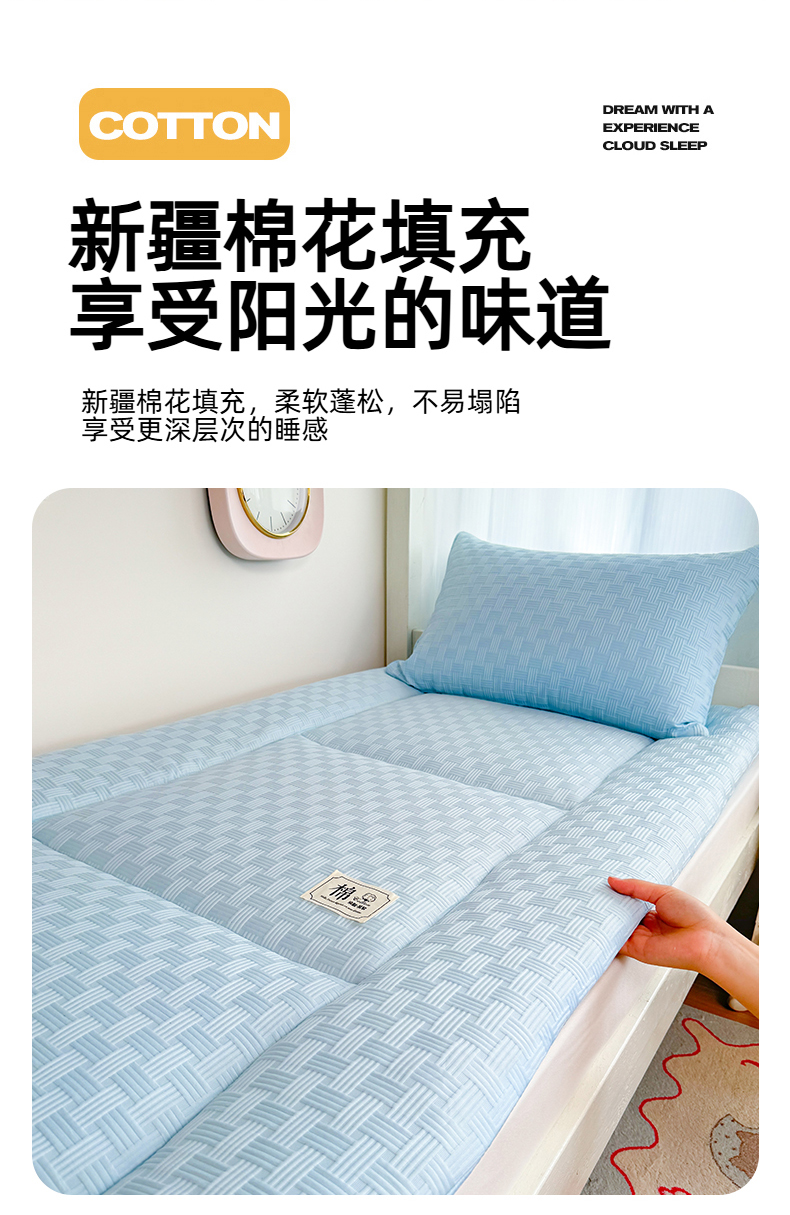 商品名称:美宜家 2025新款无印风学生棉花床垫母婴类新疆棉花床垫子软垫家用宿舍床褥垫被单双人出租屋铺底 良品兰