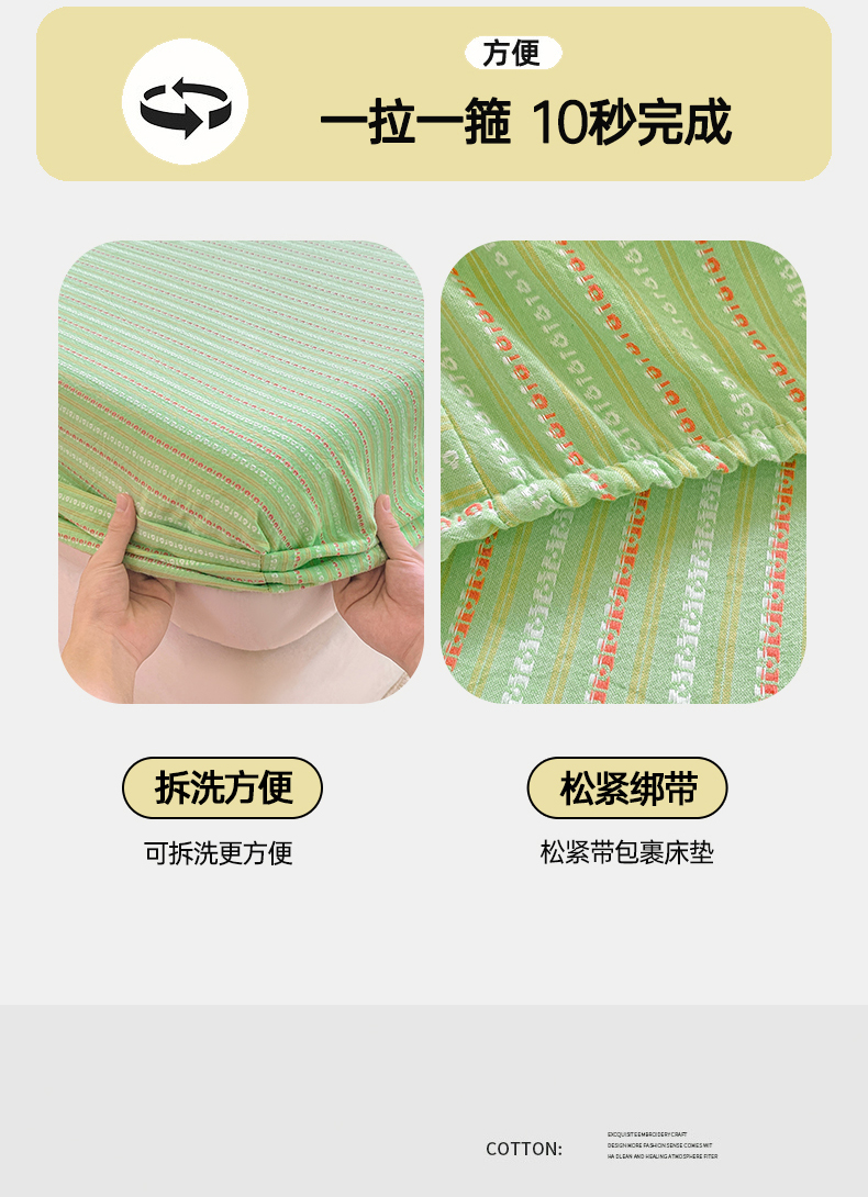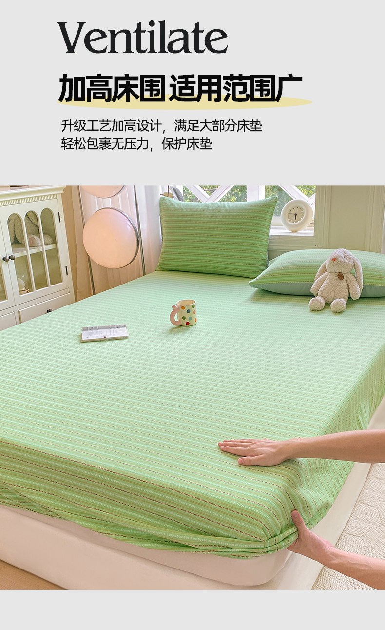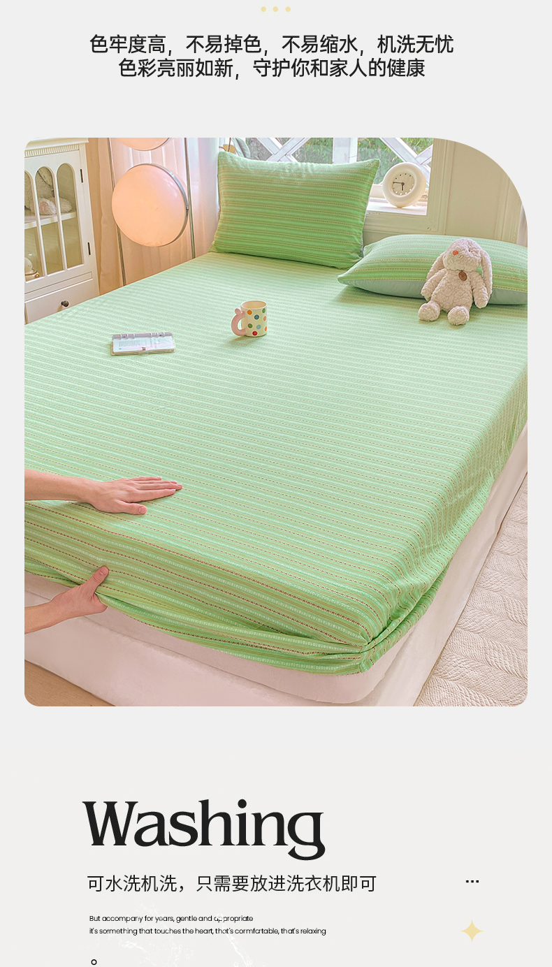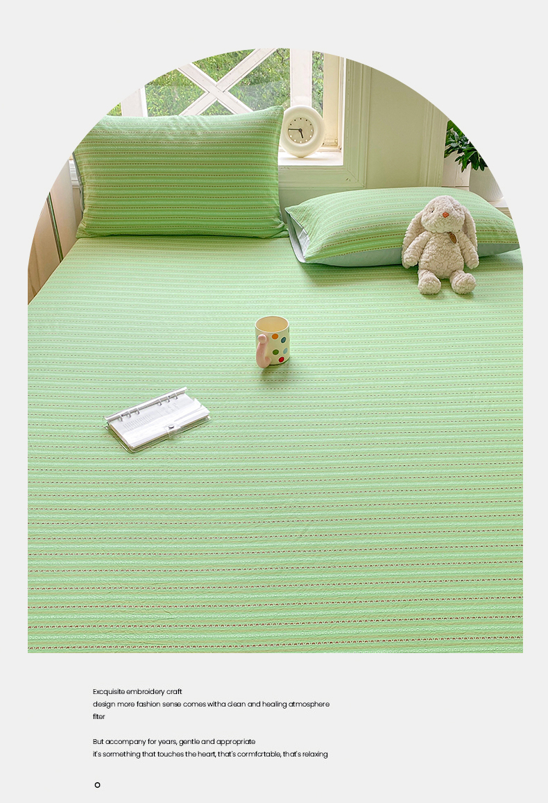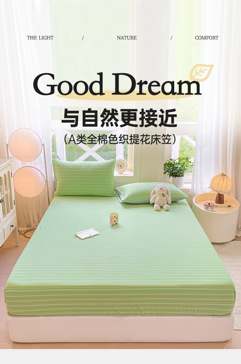 • 91家纺网 家纺一手货源 找家纺 灰鲸 2025新款全棉纯棉色织提花单床笠 床笠单件 美拉-绿