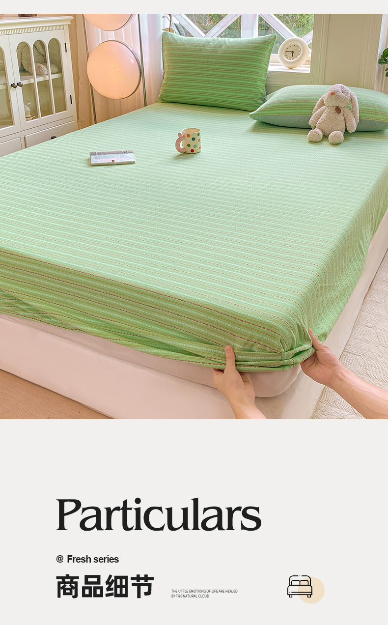 当前位置: 91家纺网 > 商品网购 > 床上用品 > 床笠 > 灰鲸 2025新款全棉纯棉色织提花单床笠 床笠单件 美拉-绿