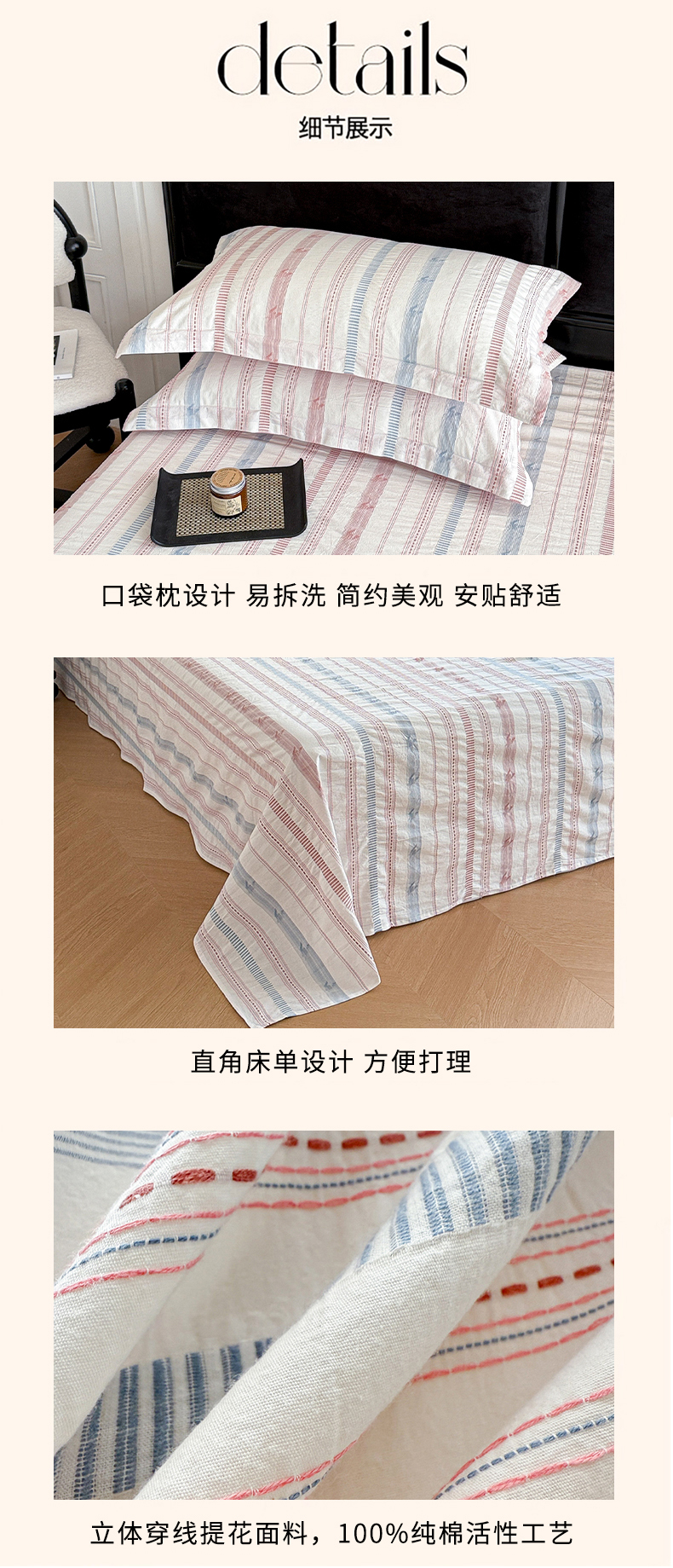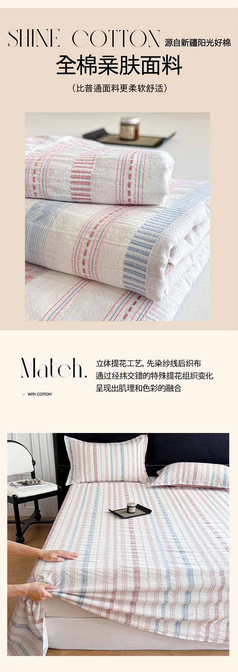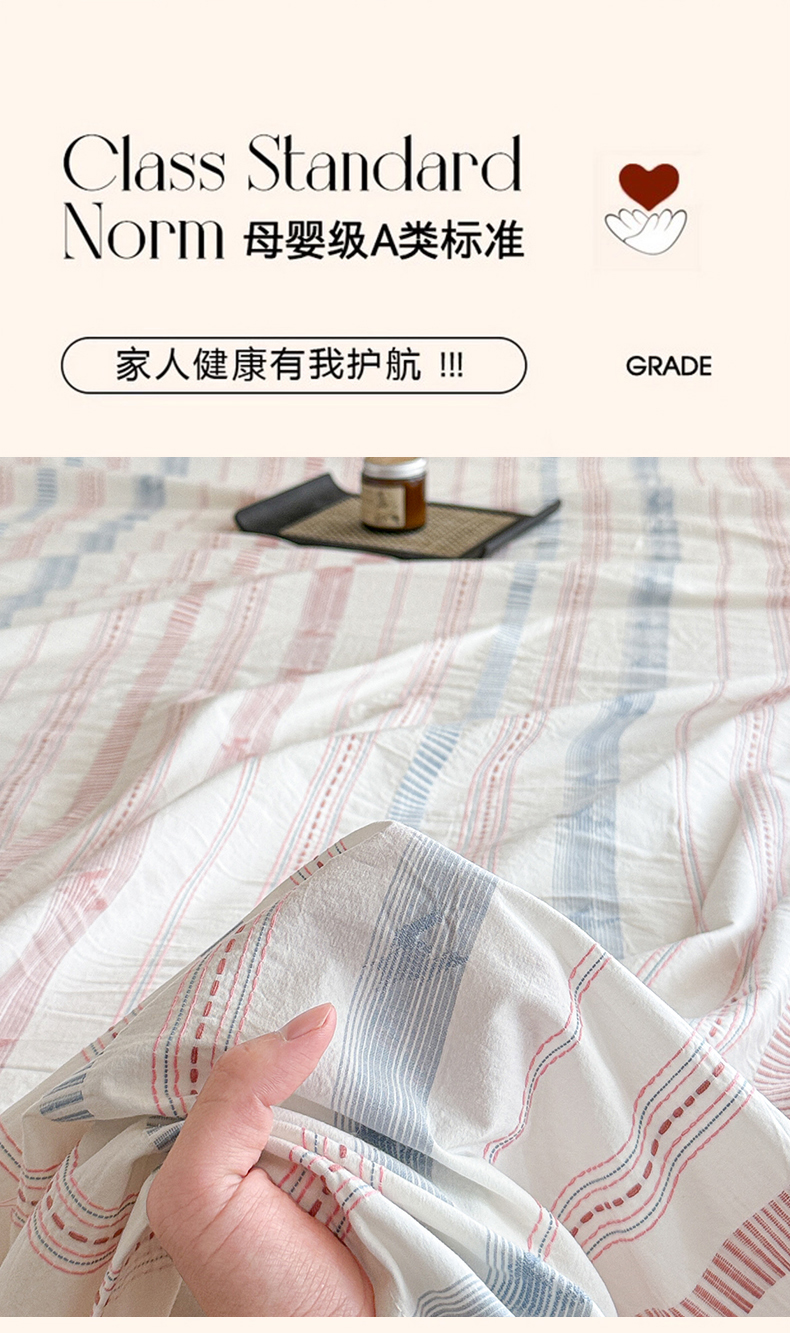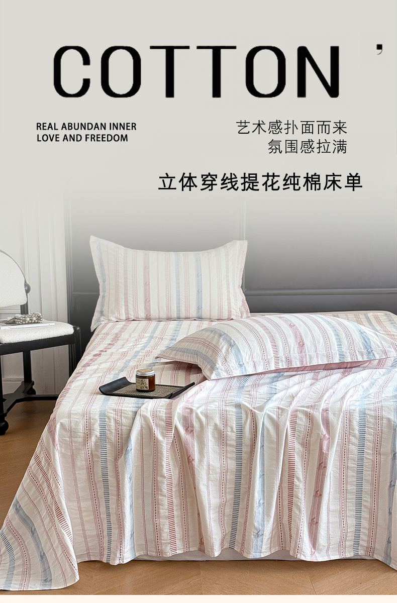 眠博士 2025新款A类立体穿线提花纯棉单床单 提花股线床单-素简 粉