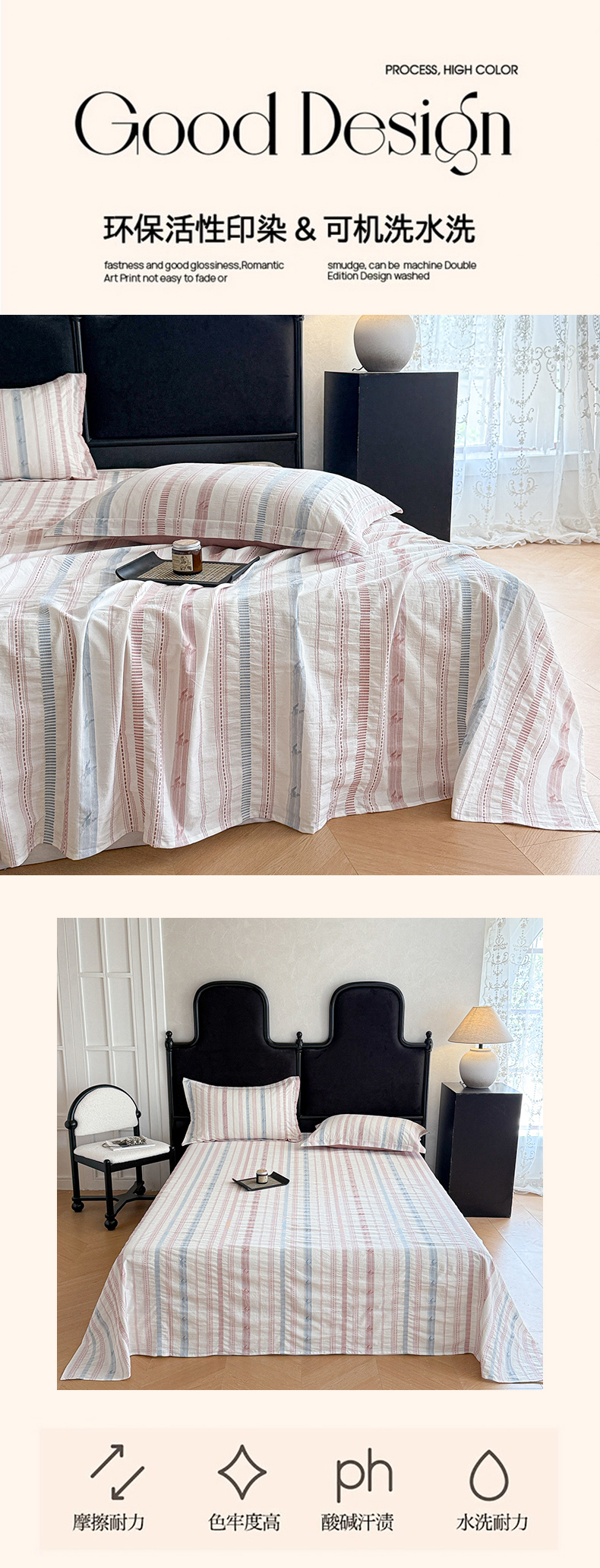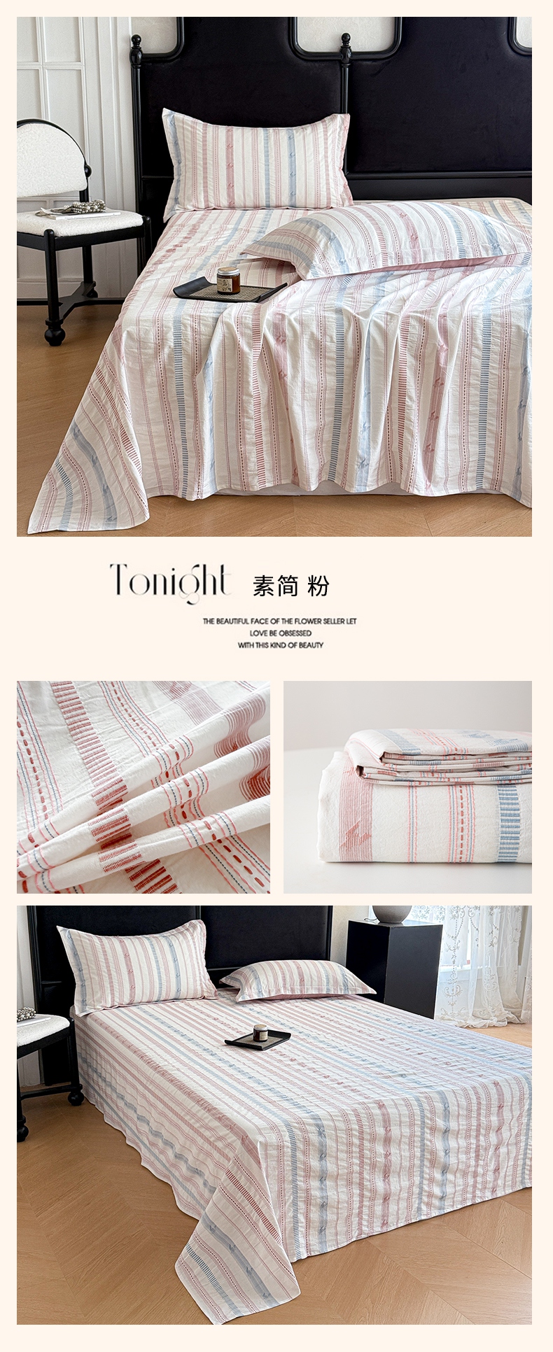 • 91家纺网 家纺一手货源 找家纺 眠博士 2025新款A类立体穿线提花纯棉单床单 提花股线床单-素简 粉