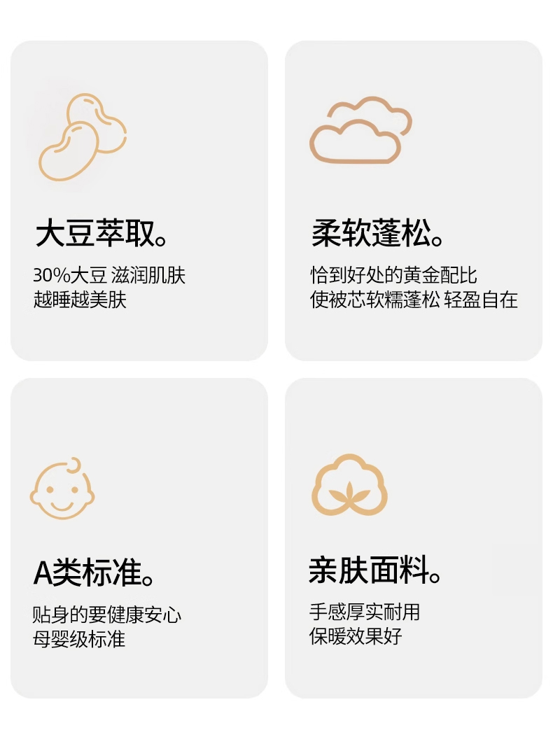 当前位置: 91家纺网 > 商品网购 > 被子 > 冬被 > 晚悠家纺 2025新款A类提花云感睡眠立体大豆被子被芯 米灰